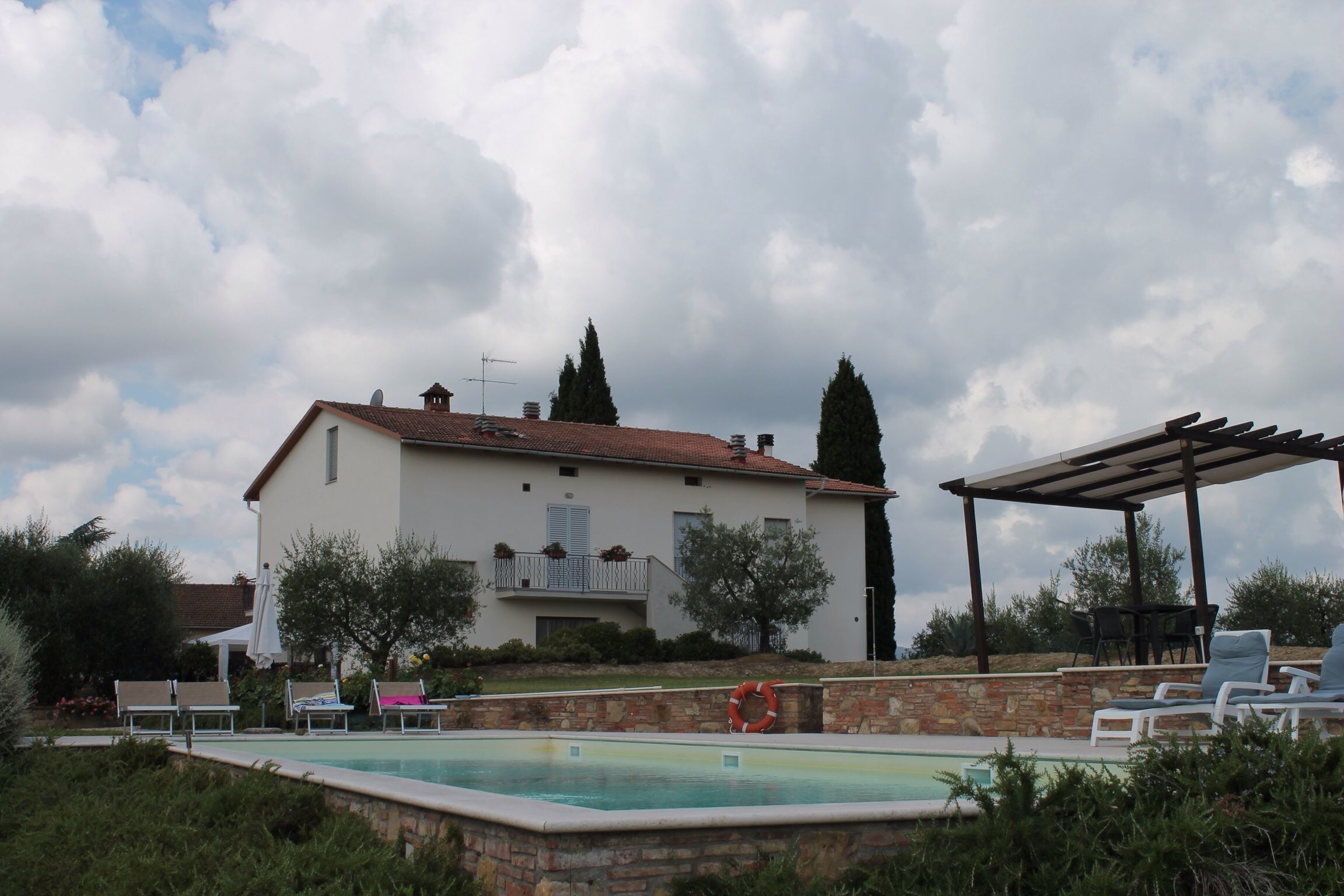 We had a fabulous week at captannina it is set in a wonderful location you have to go there to appreciate it the owners could not have been more helpful in every way from organising a taxi to offering fresh eggs it is a working vineyard and olive grove but they always had time to talk with us and give information on the area .
