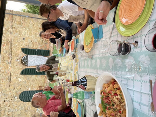 the views from the villa are stunning especially the sun setting on Montepoluciano with the ever-changing light you never get tired of looking over the hills the kitchen is nicely equipped with everything you need We even had a cooking class at the villla that was great fun we spent most of the time outside wes aroundr the picnic table with a very solid Covering over it.