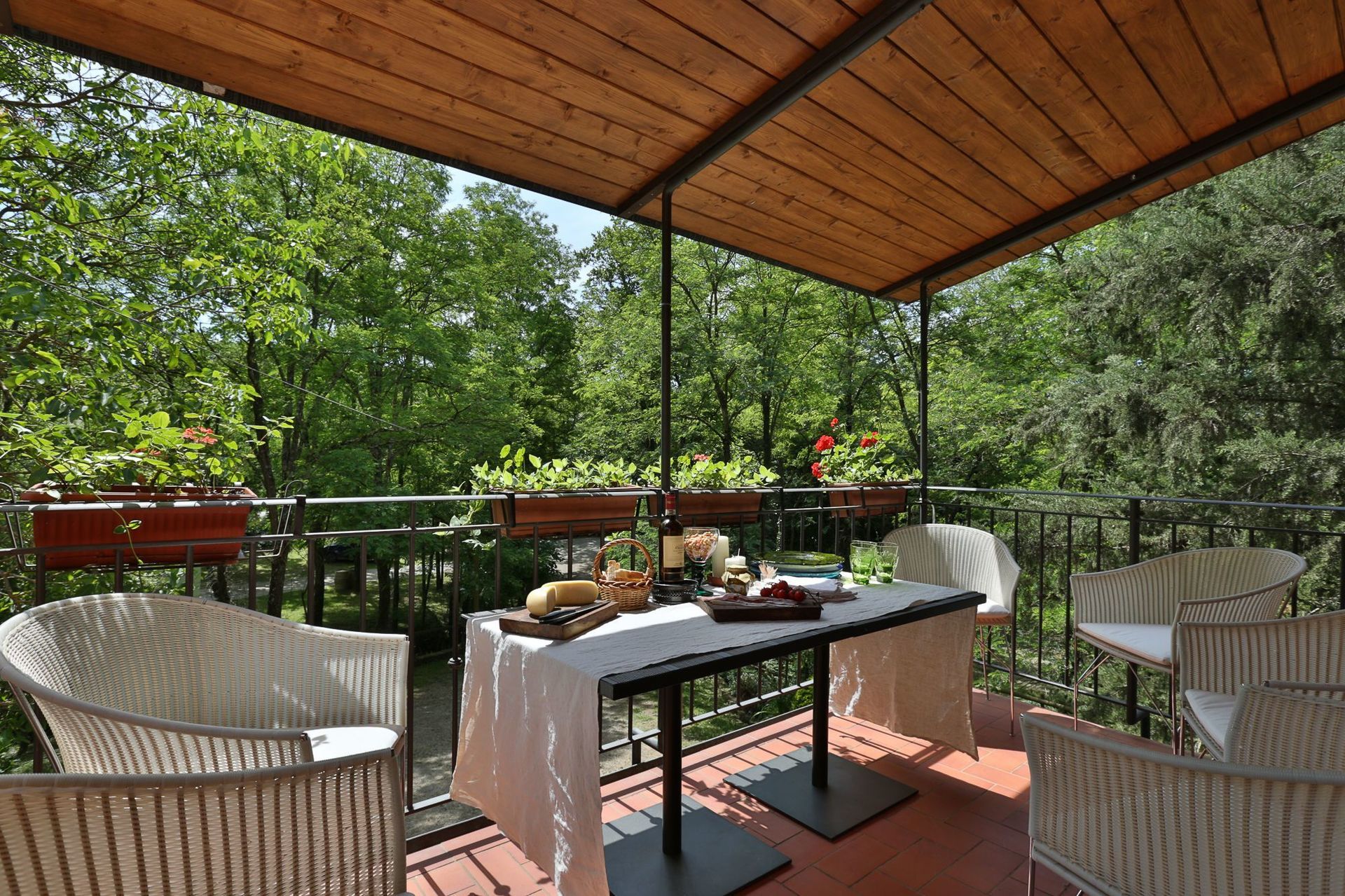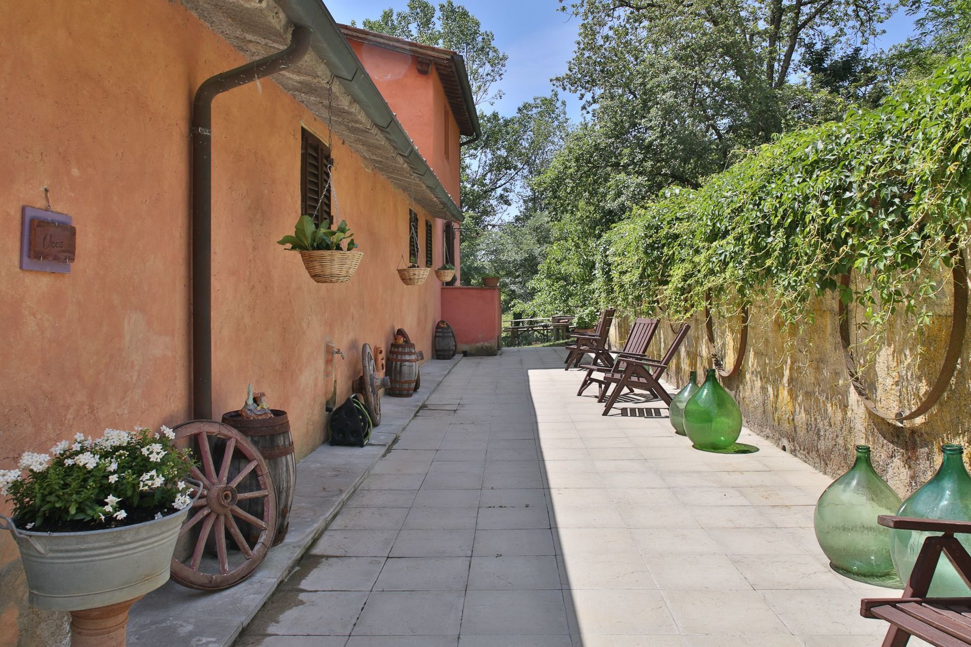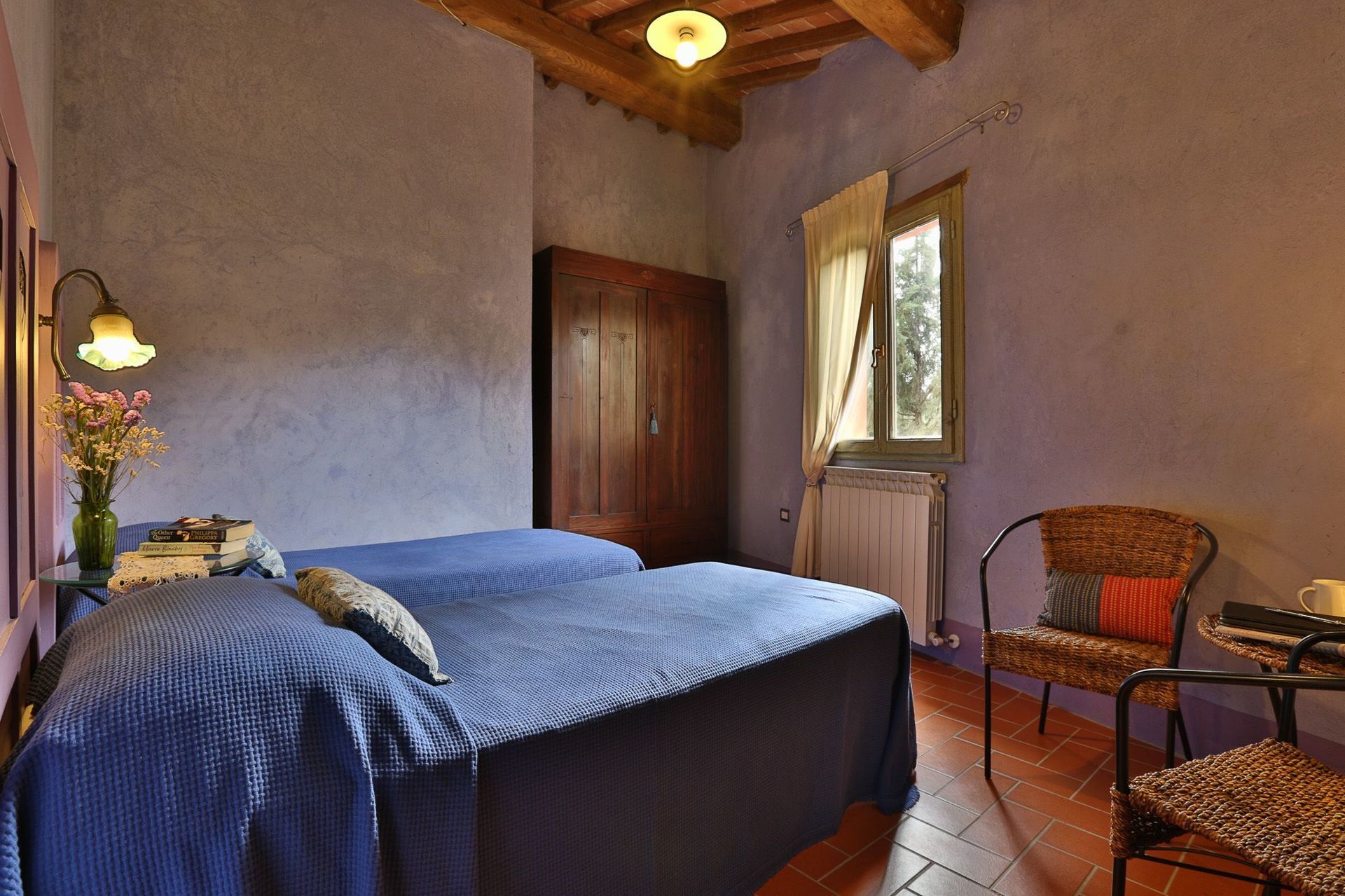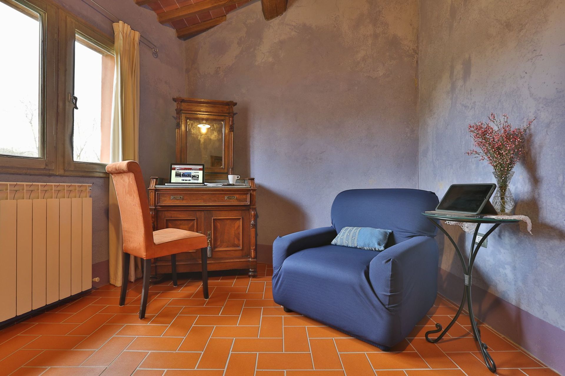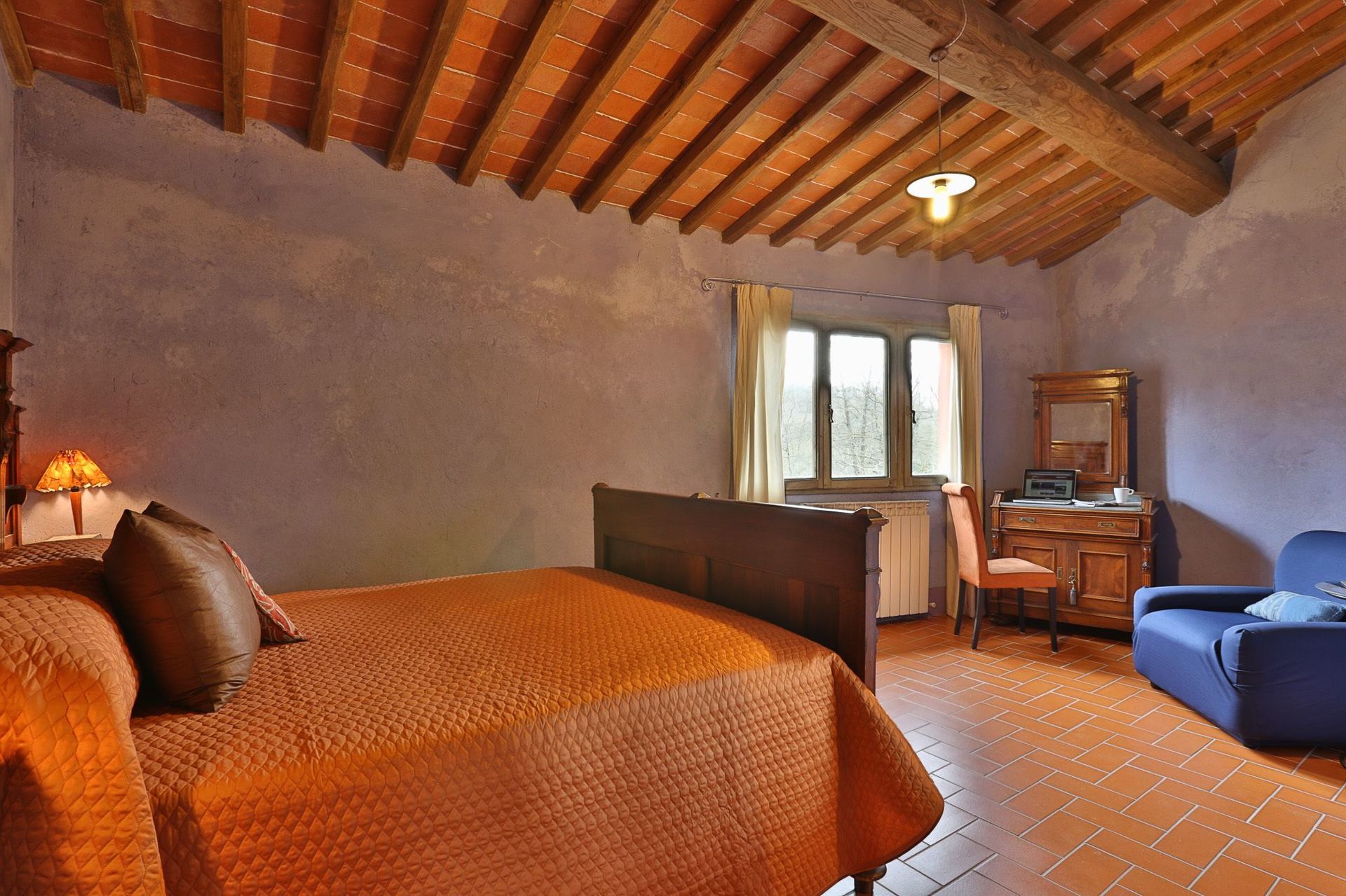 Het meubilair is typisch Toscaans met tevens enige antieke stukken (19de eeuw).