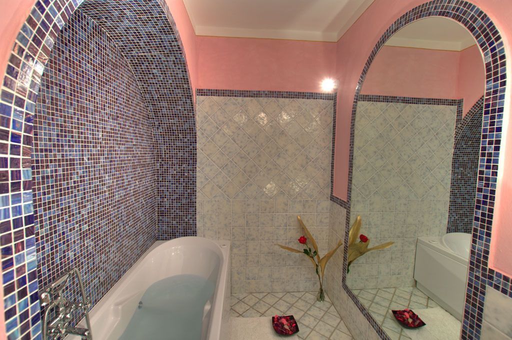 Slaapkamer met badkamer 1: tweepersoonsbed, WIFI internet, airconditioning, satelliet tv, bubbelbad, wastafel, toilet , bidet.