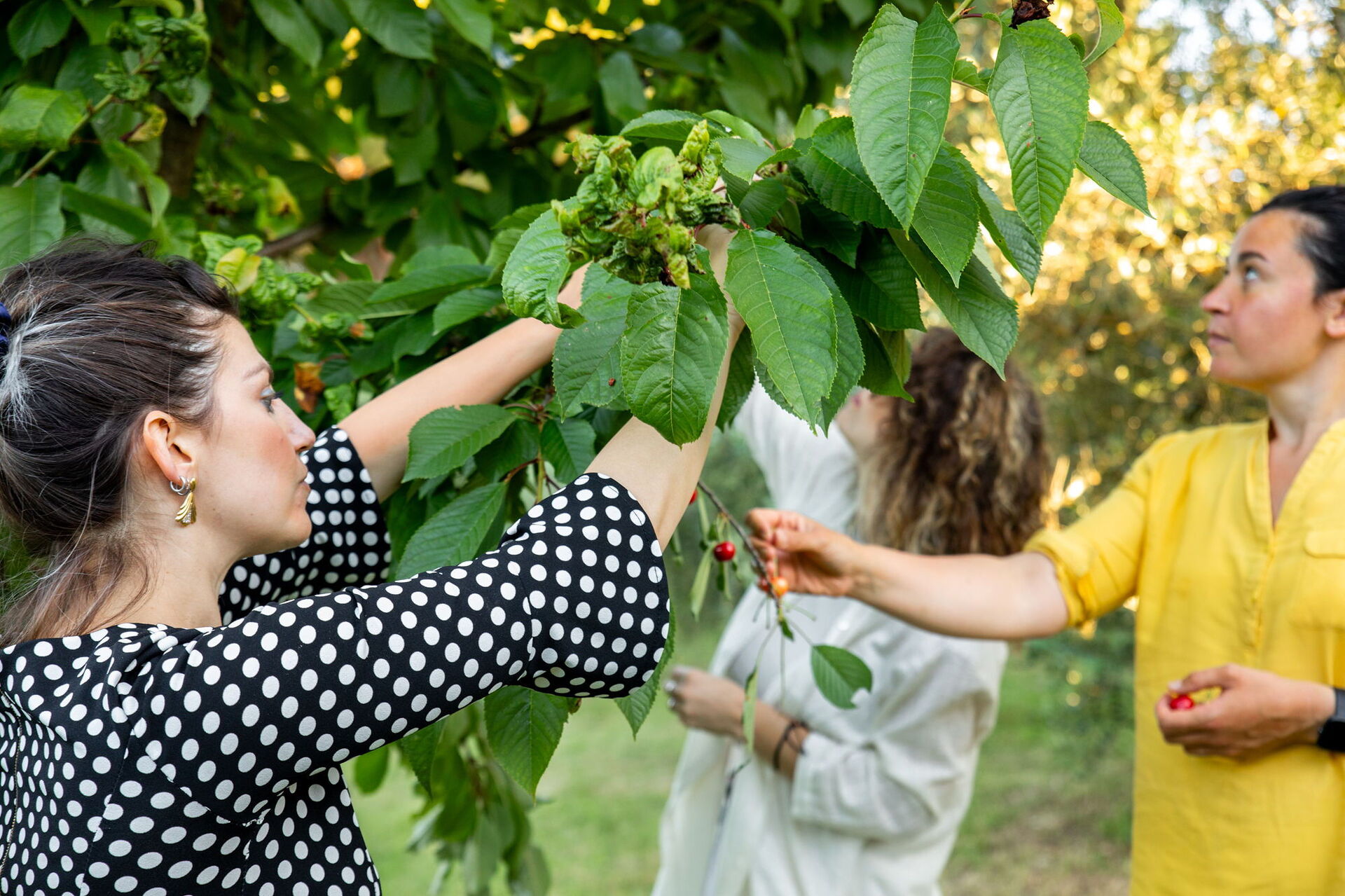 Het maakt deel uit van een werkende boerderij, de eigenaren fokken dieren en verbouwen fruitbomen en groenten. Enkele katten zijn aanwezig op het terrein.