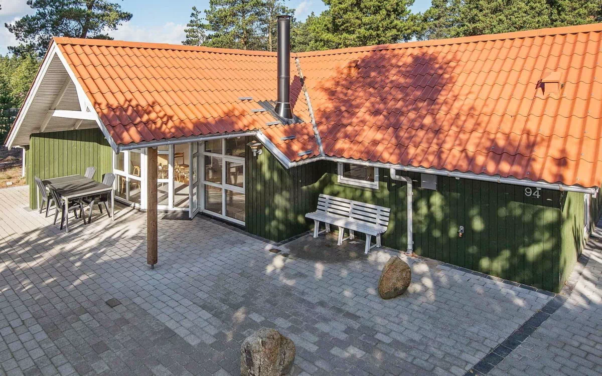 A well-kept and well-equipped holiday cottage with a whirlpool and sauna. The house can be found at the end of a closed road surrounded by a unique scenery in Blåbjerg Plantation. The washing machine and tumble dryer can be found in the combined entrance and scullery. Open kitchen in connection with the living and dining room, where you can enjoy the view of the scenery through the large windows. Access the tiled and partly covered terrace, surrounding most of the cottage. The cottage has a bright atmosphere.