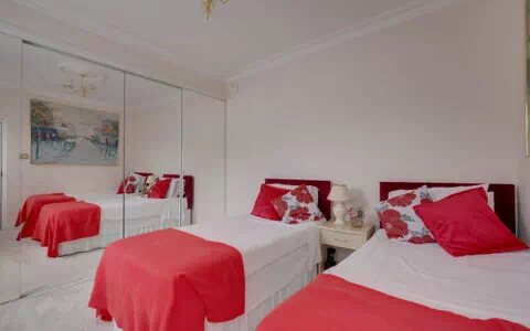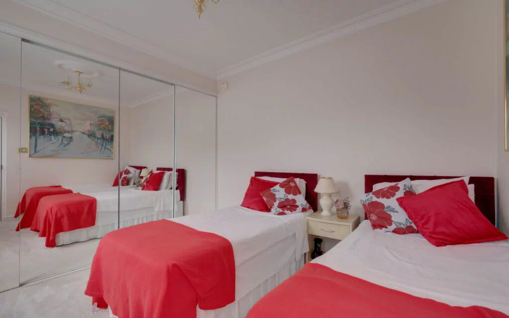 Appartement 3-kamers op de 1e verdieping. Het objekt is geschikt voor 4 volwassenen. Comfortabel en gezellig ingericht: woon-/eetkamer met eettafel en TV (Flatscreen TV), radio, CD-speler en DVD. 1 kamer met 2 bedden en douche/WC. 1 kamer met 2 bedden. Keuken (4-pits kookplaat, oven, afwasmachine, magnetron, diepvriezer). Bad/douche/WC. Verwarming. Ter beschikking: wasmachine, droger, strijkijzer. Internet (Internet (WiFi), gratis). Niet geschikt voor kinderen onder 18 jaar. Rookvrij huis. TV alleen EN.