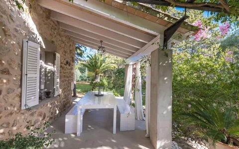 Camí de Ternelles 1 km van Pollença: Zeer moderne, mooi, comfortabel landgoed "Romantica Ternelles", van 2 verdiepingen, omgeven door bomen. Buiten de plaats, 1.5 km van het centrum van Pollença, rustige, zonnige ligging, 1 km van de bosrand, 6.8 km van zee, 6.9 km van het strand, te midden van groen. Voor alleengebruik: groot, verzorgde tuin met gazon en bomen, vijver. Buitendouche, patio, prieel, tuinmeubelen, barbecue. In het huis: internetaansluiting, Internet (WiFi), air-conditioning, wasmachine. Parkeerplaats bij het huis. Supermarkt 1.5 km, restaurant 1.5 km, bar 1.5 km, fietsverhuur 1.5 km, centrum te voet bereikbaar in 15 minuten, bushalte 1.5 km, zandstrand 6.8 km, rotsstrand 6.8 km. Jachthaven 6.8 km, golfterrein (18 holes) 5 km, zeilschool 6.8 km, tennis 2 km, wandelroutes 1 km vanaf het huis, fietspad 1 km. Attracties in de buurt: Cala Sant Viçenc 6.8 km, El Calvari, Puig 1.5 km, Puig de Maria 2.5 km, Port de Pollença 6.8 km. Geschikt voor senioren, niet geschikt voor kleine kinderen. Het objekt is geschikt voor 4 volwassenen groepen jongeren uitsluitend op aanvraag. Laden en lossen van de baggage is mogelijk bij het huis. Een deel van het huis is afgesloten en niet bezet.