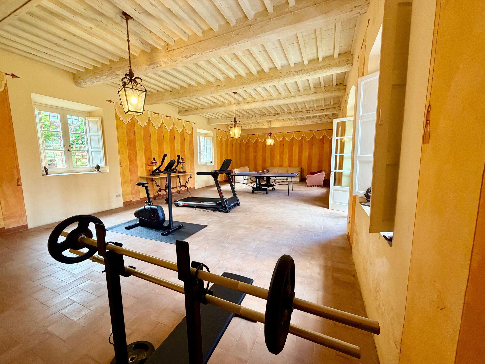 Keuken: goed uitgeruste keuken, tien eettafels, vaatwasser, twee ijkasten, magnetron, kookplaat, twee ovens, twee broodroosters, italiaans koffiezetapparaat, WIFI internet.
