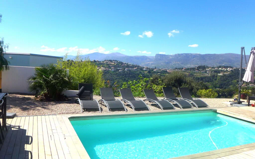 Moderne, mooi villa "Les Oliviers", van 2 verdiepingen, bouwjaar 2012. Boven Nice Ouest, in de wijk St Pierre de Feric, rustige, zonnige ligging in een woonwijk, 8 km van zee, 8 km van het strand. Voor alleengebruik: terrein, openluchtzwembad (6 x 4 m, 150 cm diepte, seizoensgebonden beschikbaarheid: 01.Jun. - 01.Sep.) met alarminstallatie. Tafeltennis, terras, parkeerplaats (voor 4 auto's). Winkel 4 km, levensmiddelenwinkel 1.3 km, supermarkt 1.3 km, restaurant 1.2 km, bakkerij 1.3 km, bushalte "Le Plateau" 10 m, treinstation "Nice-Ville" 7 km, stenenstrand "publique" 7 km. Golfterrein (18 holes) 24 km, manege 1.9 km. Attracties in de buurt: Place Masséna 8 km, Promenade des Anglais 8 km, Vieux-Nice 9 km, Vieux-Port 10 km, Chateau de Nice 10 km. Wandelgebied Parc National du Mercantour 54 km. Auto noodzakelijk. De eigenaar accepteert geen jeugdgroepen. De sleuteloverdracht vindt plaats bij het agentschap Interhome in Nice, 6 km.