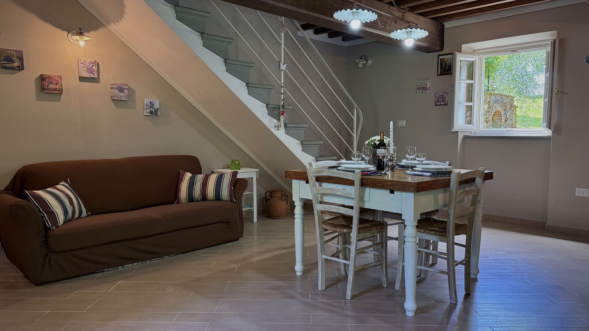 Bij aankomst vindt u een prachtige, schone en goed onderhouden woning met uitzicht over de bergen en de heuvels ideaal voor een rustige vakantie in Toscane. Hoe u de dagen ook doorbrengt - met excursies, winkelen, musea bezoek of rijdende door het prachtige landschap, zodra u thuis komt kunt u uitrusten samen met familie en vrienden bij het zwembad voor een perfecte afsluiting van nog weer een dag in Toscane. Dineren met vrienden en familie is een grote onderdeel van de Toscaanse cultuur. Maak gebruik van de keuken om maaltijden te bereiden met lokale producten terwijl u op vakantie bent. De keuken biedt o.a. een broodrooster, fornuis en ijskast, en natuurlijk ook voldoende servies en bestek voor minstens zes personen.