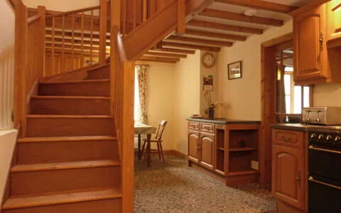 2-kamers cottage op 2 verdiepingen. Ruim en licht, comfortabel en smaakvol ingericht: open woonkamer met TV, Flatscreen TV en DVD. Open keuken (4-pits kookplaat, oven, afwasmachine, magnetron, diepvriezer) met eettafel. Bovenverdieping: 1 2-pers. kamer met 1 2-pers bed. Douche/WC. Verwarming. Mooi uitzicht op het landschap. Ter beschikking: wasmachine, droger. Internet (Internet (WiFi), gratis). Rookvrij huis.