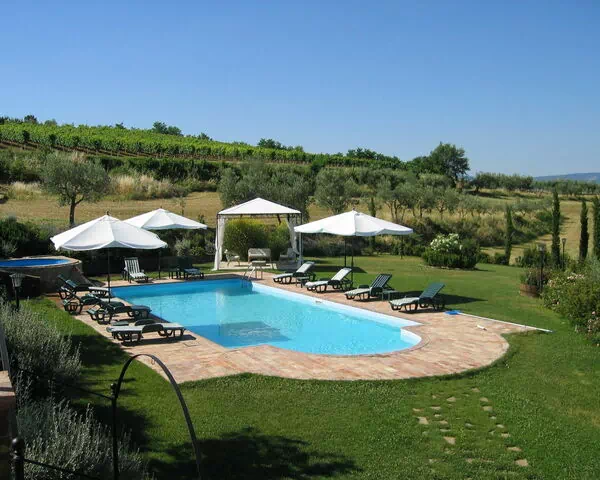 Mooi landgoed van 5 hectaren, zeer rustig en panoramisch gelegen in de heuvels boven de Chiana vallei. Op het landgoed liggen een boerenhuis van ong. 140 m2 en een dependance van 60 m2, beiden kundig gerestaureerd en smaakvol en op geraffineerde wijze ingericht.