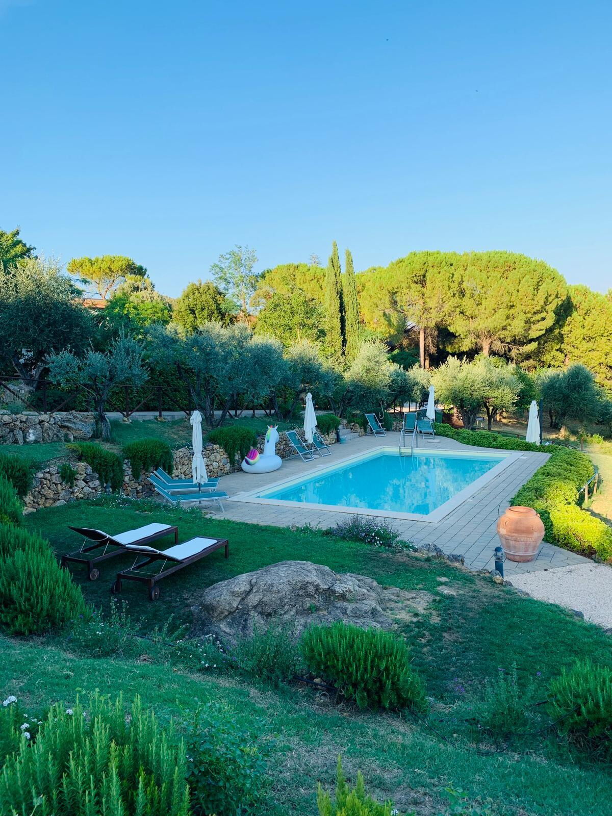 Ausgezeichnet! Sehr schöne Anlage mit großzügig geschnittenen Appartements , einem tollen Pool und einem riesigen Garten zur freien Benutzung. Sehr ruhige Lage aber doch perfekt als Ausgangspunkt für Ausflüge. Nahezu alle „must have“ Städte sind bequem zu erreichen. Sehr freundliche Vermieter.