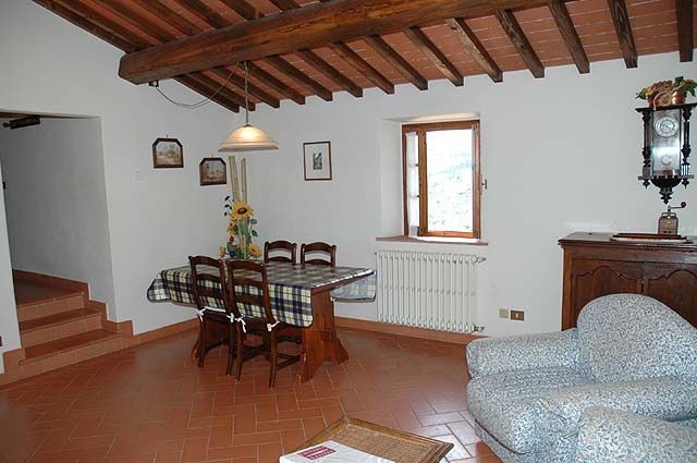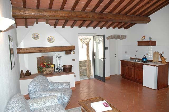 B.G. of 1° verdieping: woon/eetkamer met eenpersoonsbedbank, kookhoek (diepvriezer), slaapkamer met tweepersoonsbed, badkamer met douche.