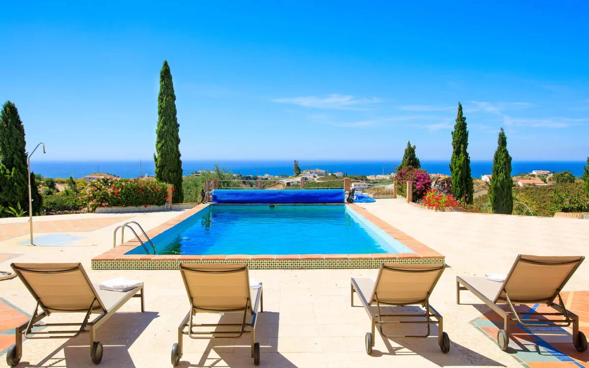 Almayate alto: Kindvriendelijke, mooi rustieke woning "Loma de juan Lucas", omgeven door bomen en velden. Rustige, zonnige ligging, 2 km van zee, op het zuidwesten. Voor alleengebruik: boomgaard 17.500 m2 (omheind), openluchtzwembad hoekig (10 x 5 m, 160 - 290 cm diepte, 01.01.-31.12.). Barbecue. In het huis: Internet (WiFi), air-conditioning, wasmachine. Parkeerplaats (voor 3 auto's). Winkel 2 km, supermarkt 2 km, restaurant 2 km, bar 2 km, bakkerij 2 km, café 2 km, voetgangersgebied 2 km, bushalte 2 km, zandstrand 2 km. Golfterrein (18 holes) 6 km. Groepen jongeren uitsluitend op aanvraag.