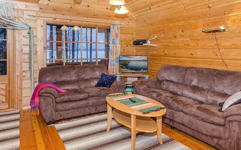 116 km north of Joensuu, 18 km northwest of Lieksa, Lake Viekijärvi 30 m (24,81 km²), shallow, stony shore facing northeast, own shore, own boat. Log cottage 2005, kitchen-living room, sleeping alcove with double bed, sleeping gallery (15 m²) with 3 beds, washroom, electric sauna, terrace, balcony. High level log cottage with good possibilities of fishing, next to cottage 1351 Rantakumpu. Fireplace-baking oven in the cottage. Child safety gate on the sleeping gallery. Underfloor heating in the washing room and toilet. The sauna benches are made of alder. Garden furniture on the terrace. Kattle grill (please, notice that customer brings charcoal). Electric hook-up for 4 cars.