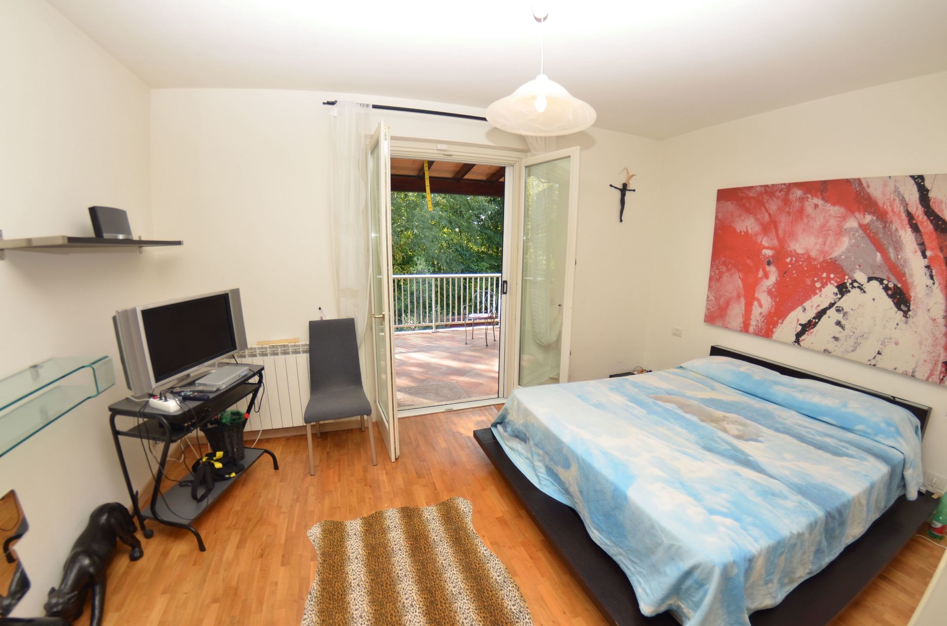 Slaapkamer 2: tweepersoonsbed, futonbed, uitgang naar het terras.