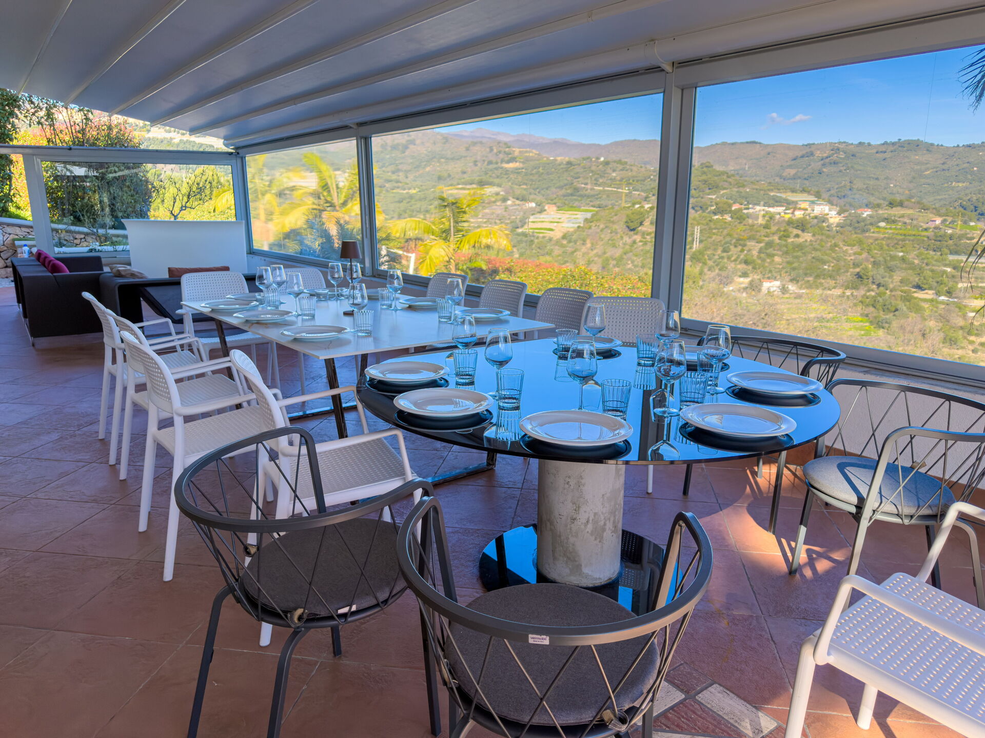 De hoofdvilla heeft 6 tweepersoonskamers en 4 badkamers, geschikt voor 12 personen.