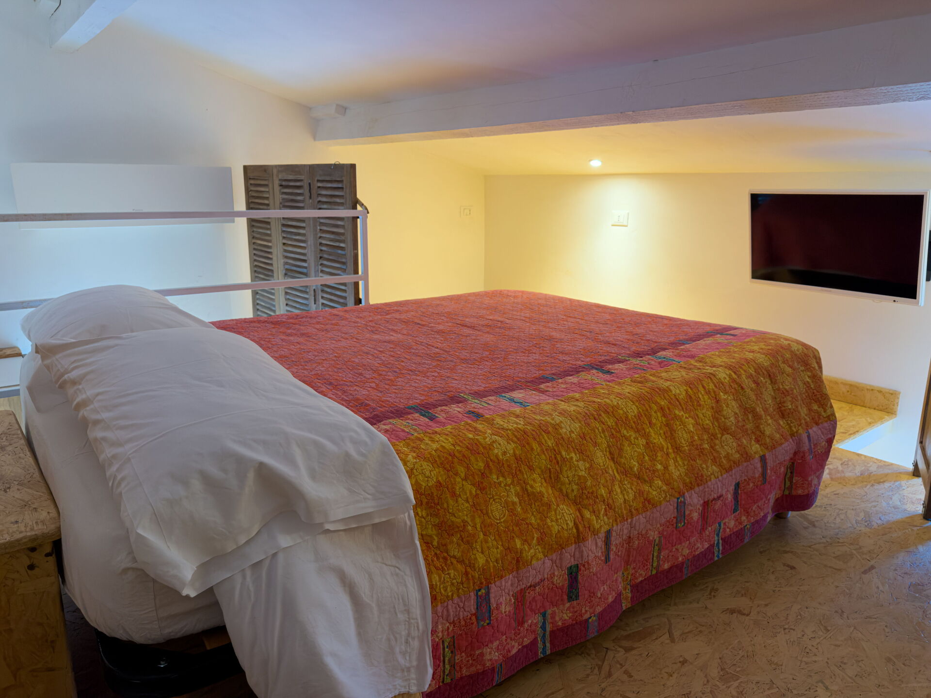 Er zijn twee alkoof slaapkamers met vloermatras, beide met satelliet-tv.