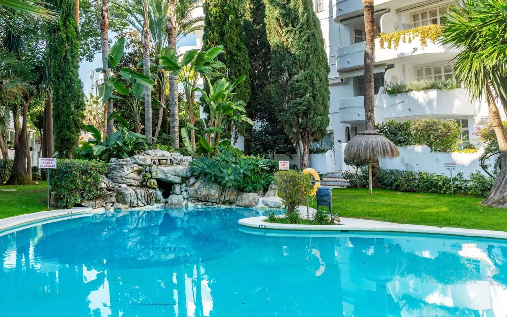 Mooi, comfortabel flatgebouw "Marbella Real", gerenoveerd. 200 m van het centrum van Puente Romano, in het district Marbella Golden Mille, perfecte locatie: in het centrum en toch rustig gelegen, 800 m van zee, van het strand, op het oosten. Voor medegebruik: mooie tuin ter ontspanning, 4 zwembaden (seizoensgebonden beschikbaarheid: 15.Jun. - 15.Sep.). Buitendouche, tennisbaan. In het complex: salon, fitnessruimte, tafeltennis, speelkamer. Parkeerplaats. Supermarkt 500 m, restaurant 100 m, bakkerij 500 m, café 100 m, bushalte "La Carolina" 300 m, zandstrand 800 m. Het objekt is geschikt voor 4 volwassenen. Bewaakt vakantiecomplex.