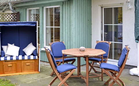 Twee onder één kap woning "Im Kiefernweg", bouwjaar 2003. 800 m van het centrum van Zinnowitz, 10 km van het centrum van Wolgast, 38 km van het centrum van Greifswald, 800 m van zee, aan een doodlopende weg. Voor alleengebruik: terrein 200 m2, verzorgde tuin (niet omheind) met planten. 35 m voetpad naar het huis. Parkeerplaats bij het huis. Supermarkt 500 m, zandstrand 800 m, overdekt zwembad 1 km.