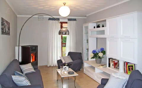 "Beani (SAC360)", huis 5-kamers 120 m2 op 3 verdiepingen. Doelmatig en gezellig ingericht: eetkamer met open haard en eettafel. Uitgang naar het terras. Kleine keuken (4-pits kookplaat, oven, diepvriezer, elektrische koffiemachine). Souterrain: woonkamer met open haard. Uitgang naar de tuin. Bovenverdieping: 1 kamer met 1 2-pers bed (160 cm). 1 kamer met 2 bedden (80 cm). Uitgang naar het balkon. Douche/WC. Zolderverdieping: 1 kamer met afgeschuinde daken met 2 bedden (80 cm). 2 terrassen overdekt. Terrasmeubelen, barbecue, ligstoelen (2). Ter beschikking: wasmachine. Internet (Internet (WiFi), gratis). Let op: niet rokers woning. Maximaal 1 huisdier/hond toegestaan.