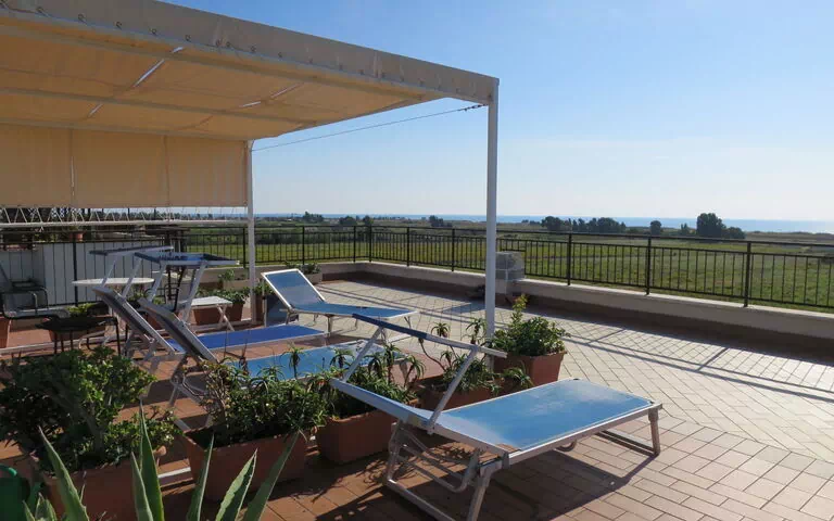 Appartementencomplex "Algamarina", van 3 verdiepingen. In de wijk Campo di Mare, 1 km van het centrum van Marina di Cerveteri, 35 km van het centrum van Civitavecchia, 40 km van het centrum van Roma, 800 m van zee, 800 m van het strand. Voor alleengebruik: buitendouche, patio, tuinmeubelen, barbecue. In het huis: dakterras. Overdekte parkeerplaats op het terrein nr. f7. Winkel 500 m, supermarkt 1 km, restaurant, bar 500 m, bushalte 2.3 km, treinstation "Marina di Cerveteri" 1 km, veerboot "Civitavecchia" 35 km, meer (zwemmen) "Bracciano" 25 km. Attracties in de buurt: Cerveteri 3 km, Santa Severa 10 km, Santa Marinella 20 km, Tarquinia 25 km, Areoporto Fiumicino 35 km, Ostia Antica 45 km. Groepen jongeren uitsluitend op aanvraag. Op aanvraag kan een transfer vanaf de luchthaven naar de vakantiewoning geregeld worden. Het leidingswater heeft geen drinkwaterkwaliteit.