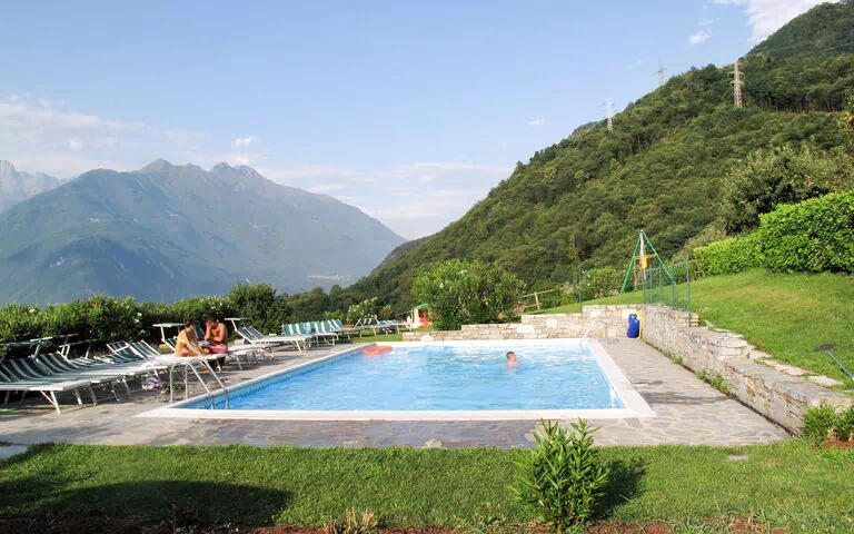 Residentie "Camilla & Sabrina", omgeven door weiden. 6 appartementen in de woning. In de wijk Chiaro, 3 km van het centrum van Colico, 40 km van het centrum van Lecco, 65 km van het centrum van Como, verhoogde ligging tegen een helling, 3 km van het meer. Voor medegebruik: terrein, verzorgde tuin met gazon, openluchtzwembad (12 x 6 m, 120 cm diepte, 15.05.-01.10.). Tuinmeubelen (schommel), onderhoud zwembad door de eigenaar/tuinman, parkeerplaats op het terrein. Winkel 750 m, supermarkt 2 km, bushalte 3 km, station "Colico" 3 km, grasstrand 3.5 km. Jachthaven 3 km, golfterrein (18 holes) 35 km. Let op: de eigenaar woont op hetzelfde terrein.