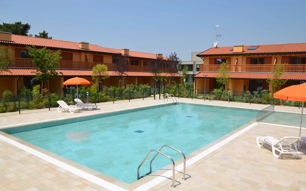 Mooi vakantiecomplex "Villaggio Tamerici", van 2 verdiepingen, aangebouwd. 28 huizen in de plaats. In de wijk Sabbiadoro, 1.2 km van het centrum van Lignano-Sabbiadoro, 13 km van het centrum van Bibione, 95 km van het centrum van Trieste, 400 m van zee. Voor medegebruik: terrein 5.900 m2 (omheind), verzorgde tuin met planten en bomen, openluchtzwembad (15 x 7 m, seizoensgebonden beschikbaarheid: 15.Mei. - 25.Sep.). Kinderzwembad, terras. In het complex: Internet (WiFi), fietsverhuur. Supermarkt 500 m, restaurant 400 m, bushalte 50 m, treinstation "Latisana (Venezia-Trieste)" 20 km, zandstrand 400 m, strandbad 800 m. Golfterrein (18 holes) 7.5 km. De eigenaar accepteert geen jeugdgroepen. Strandservice: Van ca. begin mei tot ca. half september zijn 1 ligstoel, 1 ligstoel en 1 parasol per wooneenheid bij de huurprijs inbegrepen.