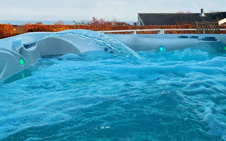 Her i dette sommerhus i Grønninghoved har I fra husets store opholdsrum med det store glasparti udsigt til Lillebælt. I har endvidere direkte adgang til husets udendørs spabad fra træterassen. Herfra
