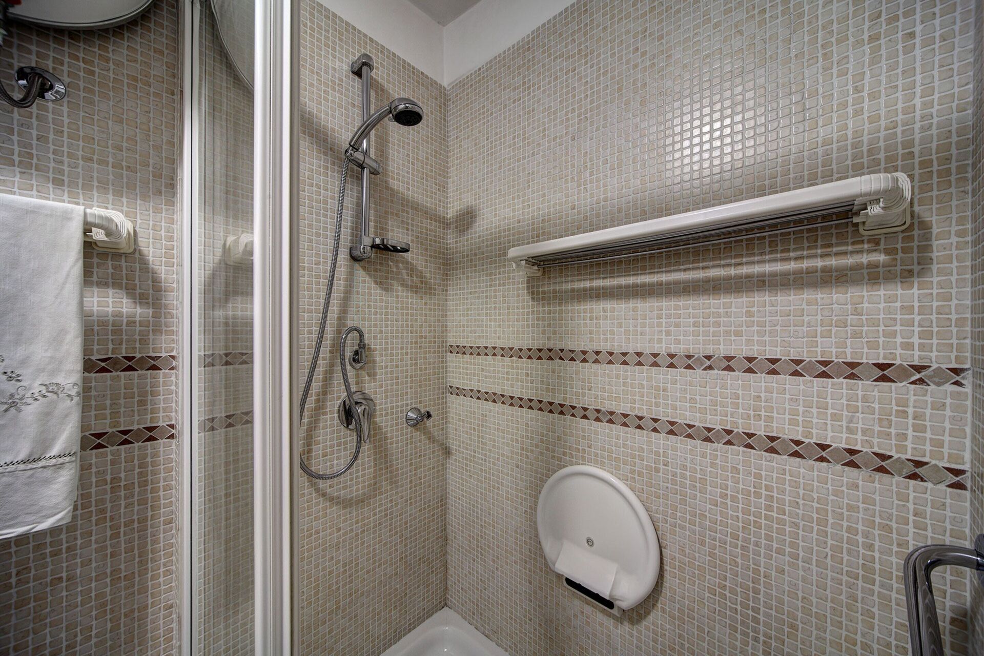 Badkamer: wastafel, toilet , bidet, douche, haardroger.
