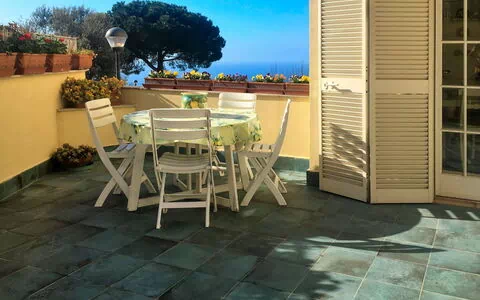 "Jennifer", appartement 2-kamers 35 m2, op de begane grond. Gedeeltelijk gerenoveerd in 2019, doelmatig en comfortabel ingericht: woon-/eetkamer met 1 2-pers divanbed, eettafel, kookhoek, Kabel-TV, Flatscreen TV en air-conditioning. Uitgang naar het terras. 1 2-pers. kamer met panoramavenster. Kookhoek (4-pits kookplaat, oven, magnetron, diepvriezer). Douche/bidet/WC. Geen verwarmingsmogelijkheid. Terras 20 m2. Terrasmeubelen, barbecue, ligstoelen. Mooi panoramazicht op zee, het landschap en de plaats. Ter beschikking: wasmachine. Internet (Internet (WiFi), gratis). Parkeerplaats (1 Auto) bij het huis. Geschikt voor families.