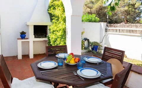 Halfvrijstaand huis 3-kamers 54 m2. Comfortabel en gezellig ingericht: woon-/eetkamer met open haard (alleen decoratie), Digitale TV. Uitgang naar de zitplaats in de tuin. 1 kamer met 1 2-pers bed (135 cm, lengte 190 cm). 1 kamer met 1 2-pers bed (135 cm, lengte 190 cm). Keuken (4-pits kookplaat, oven, broodrooster, waterkoker, magnetron, elektrische koffiemachine). Uitgang naar de zitplaats in de tuin. Bad/WC. Geen verwarmingsmogelijkheid. Terrasmeubelen, barbecue, ligstoelen (2). Ter beschikking: wasmachine, strijkijzer, haardroger. Geschikt voor families. Rookvrij huis. TV alleen ES. HUTG-058466 // Reg. Nr.: ESFCTU0000170100002439700000000000000HUTG-058466-212