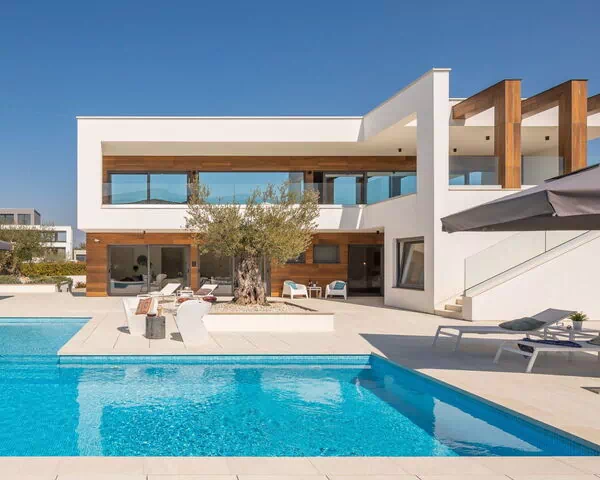 De villa "Old Olive VIII" ligt in het gehucht Salvela, op slechts 1 km van het centrum van Vodnjan in Kroatië. Dit moderne huis is verdeeld over 3 verdiepingen en staat op een volledig omheind perceel van 1.000 m2, wat volledige privacy en afzondering biedt terwijl het dicht bij alle essentiële voorzieningen blijft. De villa is zonnig gelegen en beschikt over een indrukwekkend privézwembad van 65 m2 met een diepte van 30 tot 140 cm, beschikbaar van 1 maart tot 1 november. De tuin is voorzien van een natuurtuin en volwassen bomen die een serene omgeving creëren.