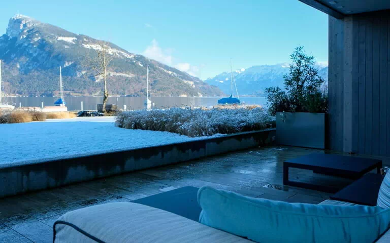 75 m2. Meer informatie beschikbaar bij de aanbieder: Dreaming by the lake! Modern furnished 3-room flat in an unbeatable location directly on the lake. The high-end garden furniture of the spacious terrace with pergola and the sunbathing lawn (shared use) invite you to sunbathe. Living room, kitchen-living room, bedroom with double bed, bedroom with 2 single beds, shower and WC are all on the ground floor. Here you will find a virtual flat tour: my.matterport.com/show/?edit=1&m=srf2fJ8WZ23 edit Here you will find a virtual tour of the (winter) outdoor area: my.matterport.com/show/?edit=1&m=o9zgDiXoq9c edit