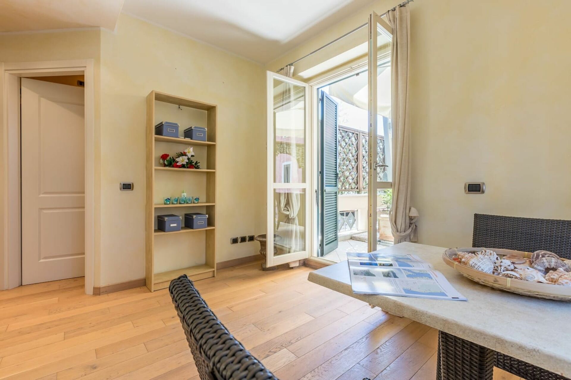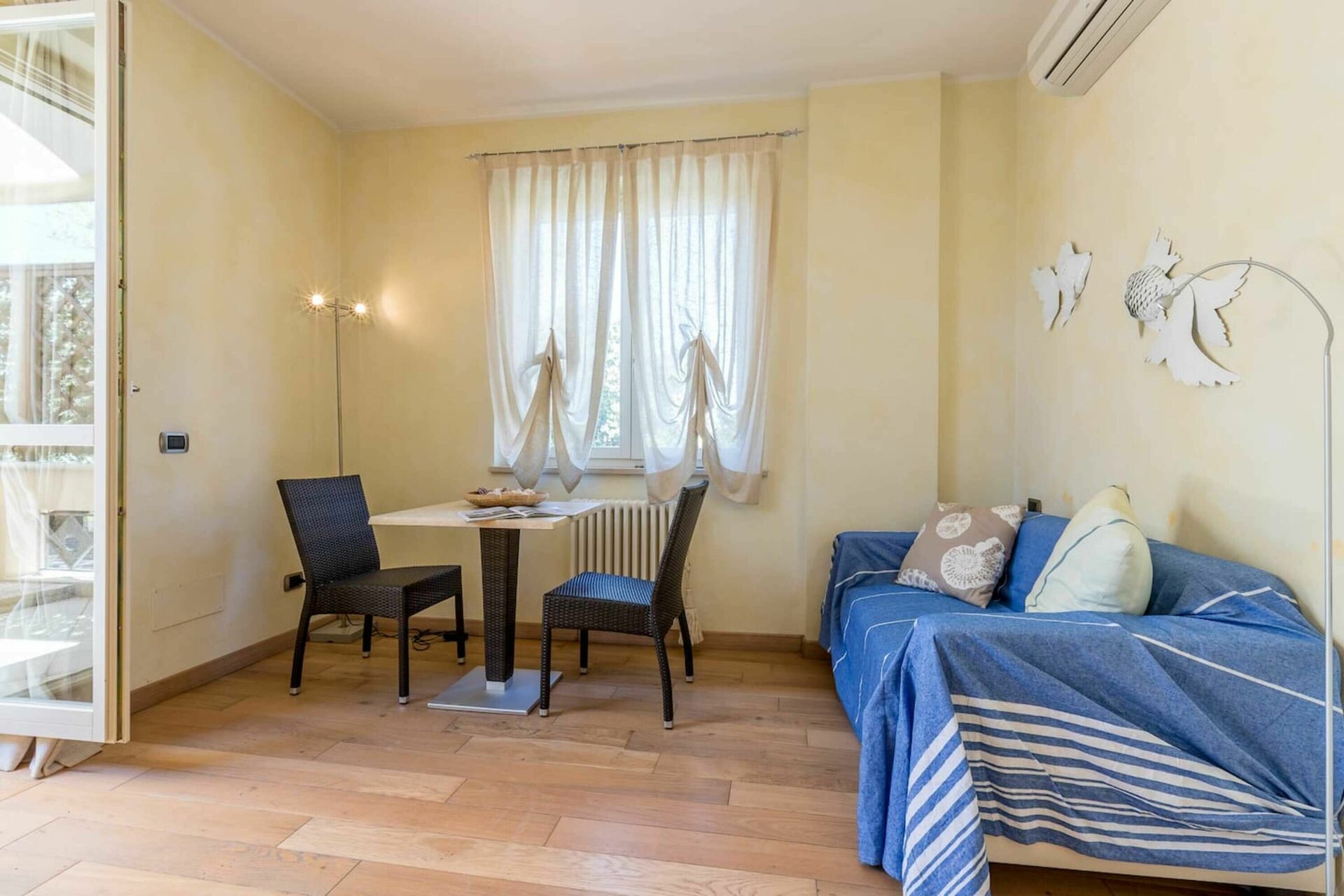 Woonkamer: bank, uitgang naar het terras.