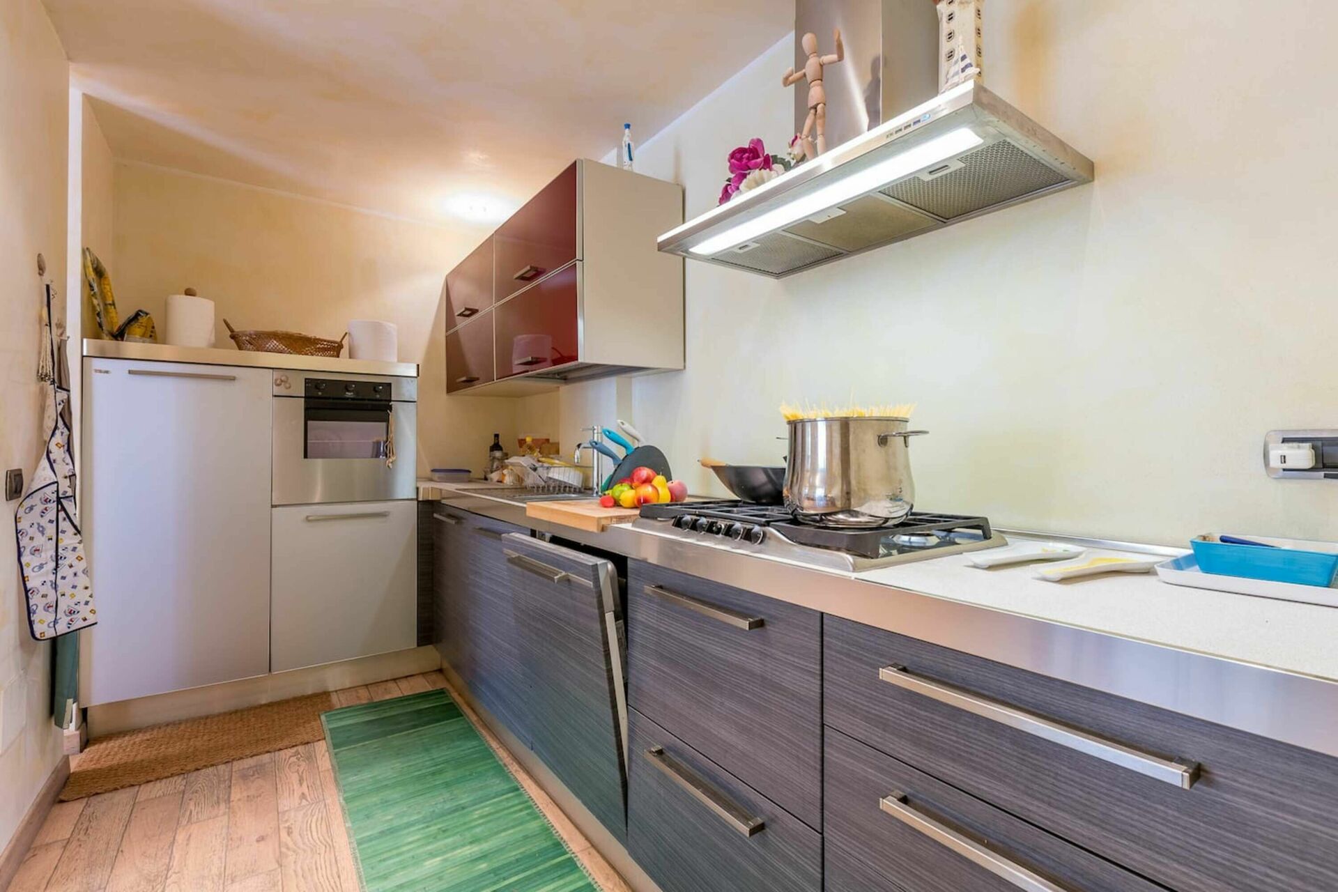 Bij aankomst vindt u een fijne, schone en goed onderhouden woning perfect voor een rustige vakantie in Toscane. Na een hectische dag toeren kunt u de tijd doorbrengen met vrienden en familie en genieten van een glaasje wijn - een perfecte manier om te uitrusten aan het einde van de dag. Buiten zijn er ook een patio en barbecue. Eten met vrienden en familie is een grote onderdeel van de Toscaanse cultuur. Maak gebruik van de keuken om maaltijden te bereiden met lokale producten terwijl u op vakantie bent. De keuken biedt o.a. een koffiezetapparaat, magnetron oven, broodrooster en ijskast, en natuurlijk ook voldoende servies en bestek voor minstens zeven personen. Eet buiten net zoals een echte Toskaan, een balkon met tuinmeubilair is perfect om te genieten van het heerlijke eten, de familie en het mooie Toscaanse klimaat.