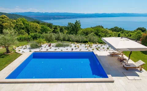 Zeer mooi, comfortabele eengezinswoning "Villa Alpeza", van 2 verdiepingen. In het gehucht Dobreć, 4 km van het centrum van Lovran, rustige, zonnige ligging, 4 km van zee, 4 km van het strand. Voor alleengebruik: terrein 4.000 m2 (omheind), planten en bomen, openluchtzwembad hoekig (50 m2, 160 cm diepte, seizoensgebonden beschikbaarheid: 12.Apr. - 15.Okt.) met trap en zout-elektrolyse. Buitendouche, terras, barbecue. In het huis: internetaansluiting, wasmachine, droger. Parkeerplaats (voor 3 auto's) bij het huis op het terrein. Winkel 500 m, supermarkt 4.5 km, restaurant 4 km, bushalte 800 m, kiezelstrand 4 km. Geschikt voor families. Gesloten residentie met een elektrische deur. Zwembad met stroming en hydromassage. Videobewaking bij de oprit en parkeerplaats.
