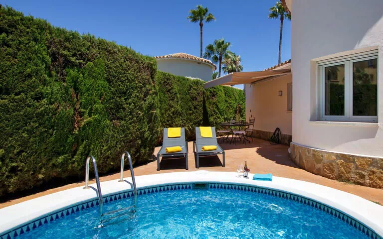 "Villa Franck", huis 3-kamers 80 m2. Ruim, gerenoveerd in 2022, zeer mooi en gezellig ingericht: woon-/eetkamer met Digitale TV, air-conditioning en heteluchtverwarming. Uitgang naar het terras, naar het zwembad. 1 kamer met 1 2-pers bed (150 cm, lengte 200 cm), air-conditioning en heteluchtverwarming. 1 kamer met 2 bedden (90 cm, lengte 190 cm), air-conditioning en heteluchtverwarming. Open keuken (oven, afwasmachine, 4 keramische glas kookplaten, broodrooster, magnetron, diepvriezer, elektrische koffiemachine). Douche/WC. Terras 30 m2. Terrasmeubelen, ligstoelen. Ter beschikking: wasmachine, strijkijzer, kinderstoel, kinderbed, haardroger. Internet (Internet (WiFi), gratis). Parkeerplaats. TV alleen ES. R000000001