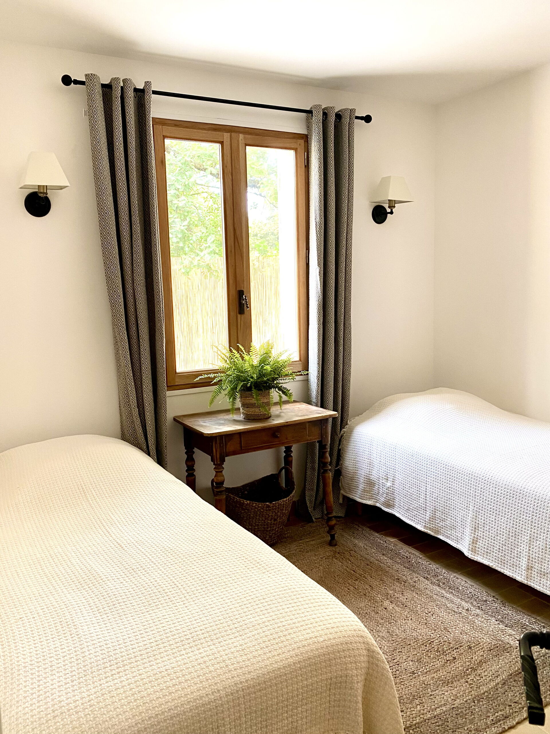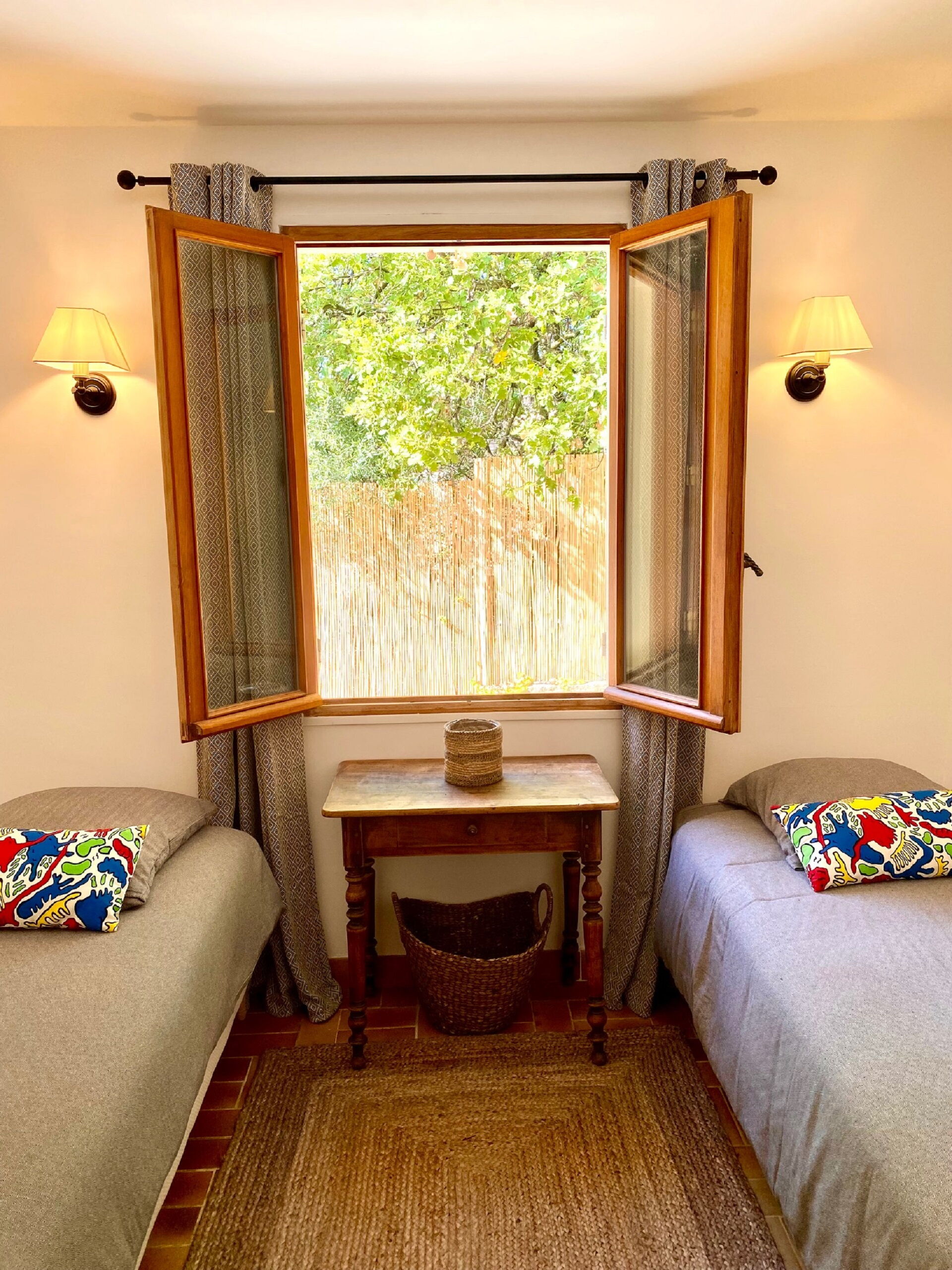 Slaapkamer 2 (20 m2): smal tweepersoonsbed (breedte: 1.4m, lengte: 2m), internet, airconditioning, uitgang naar het terras.