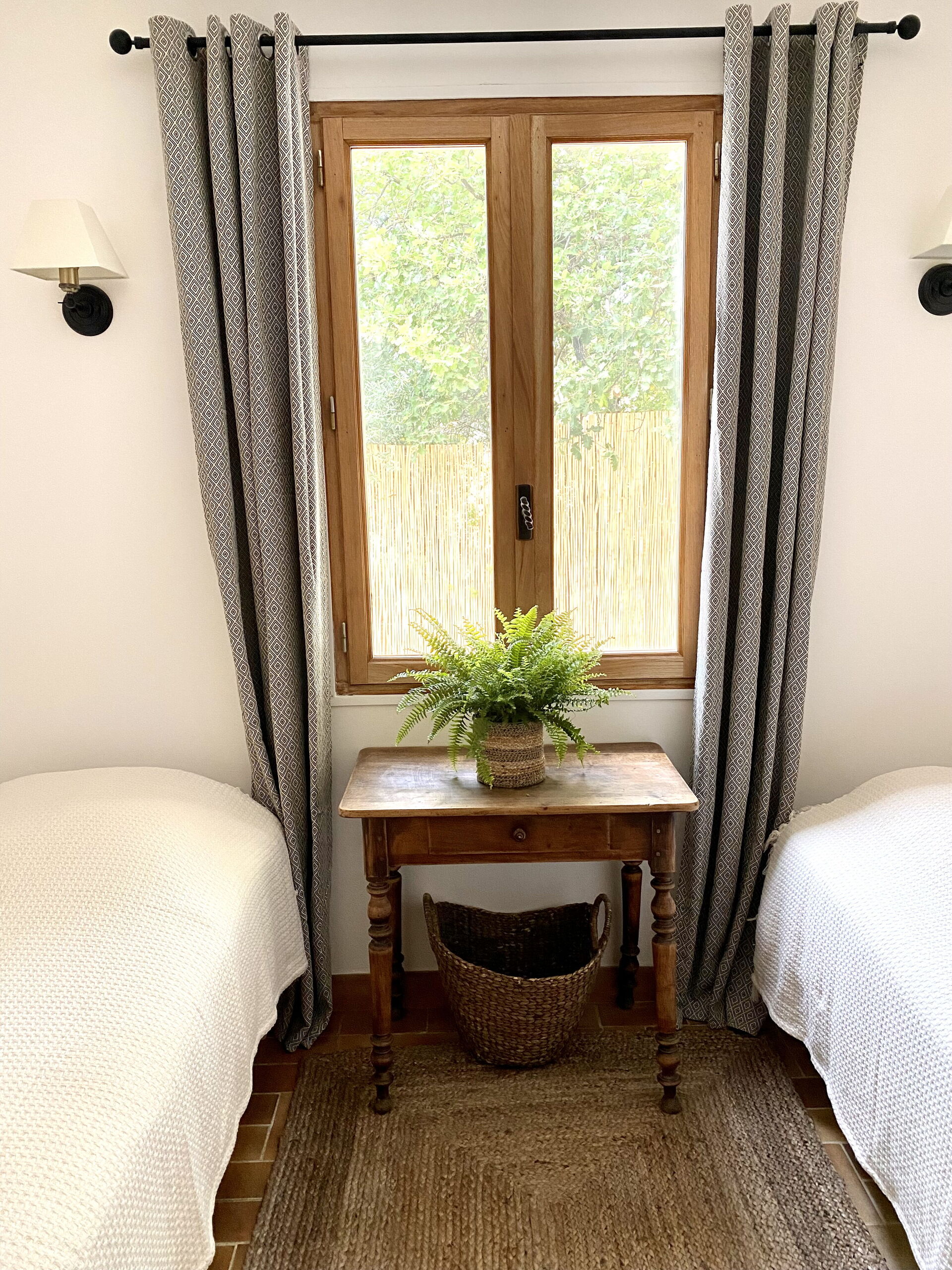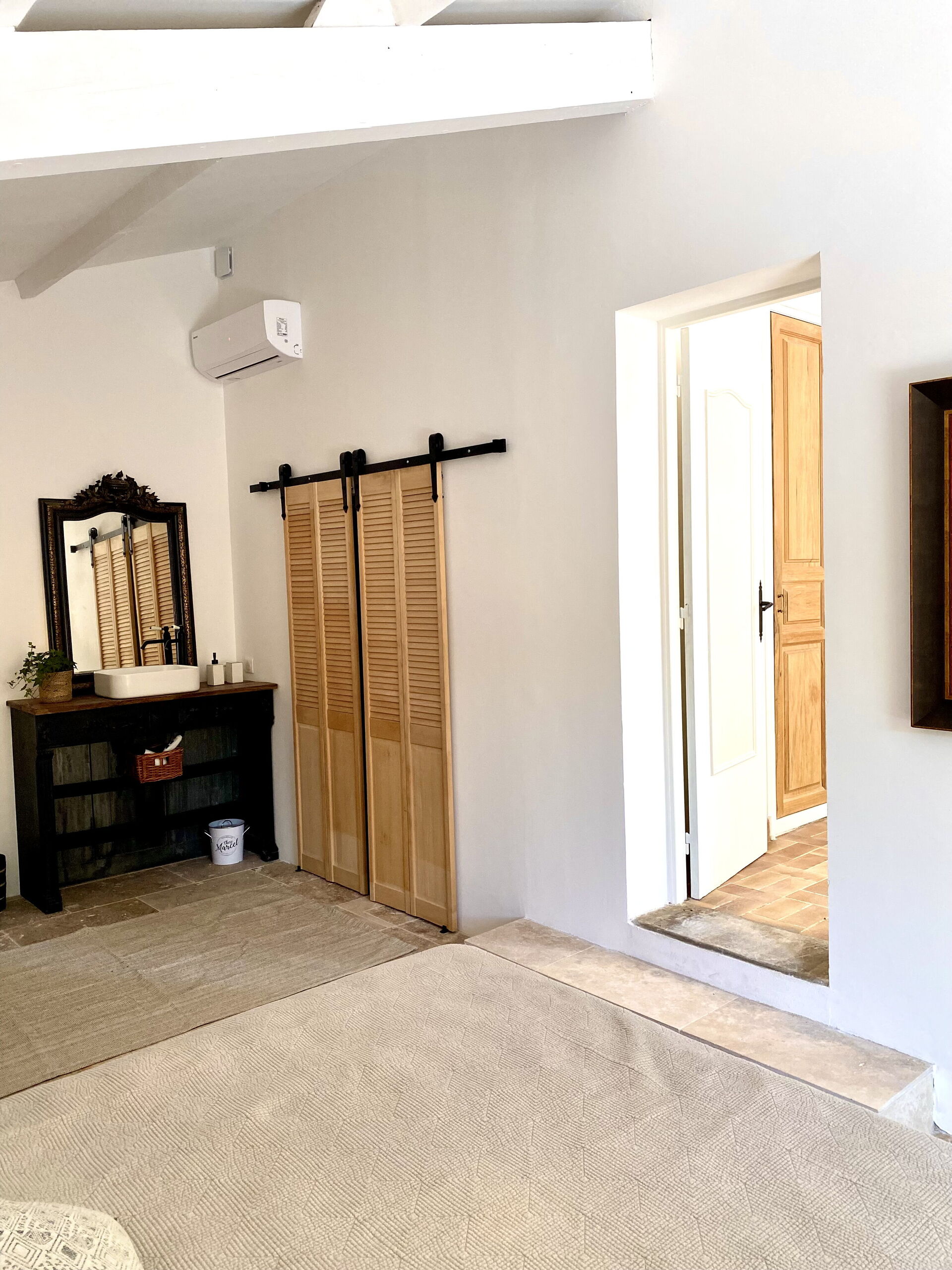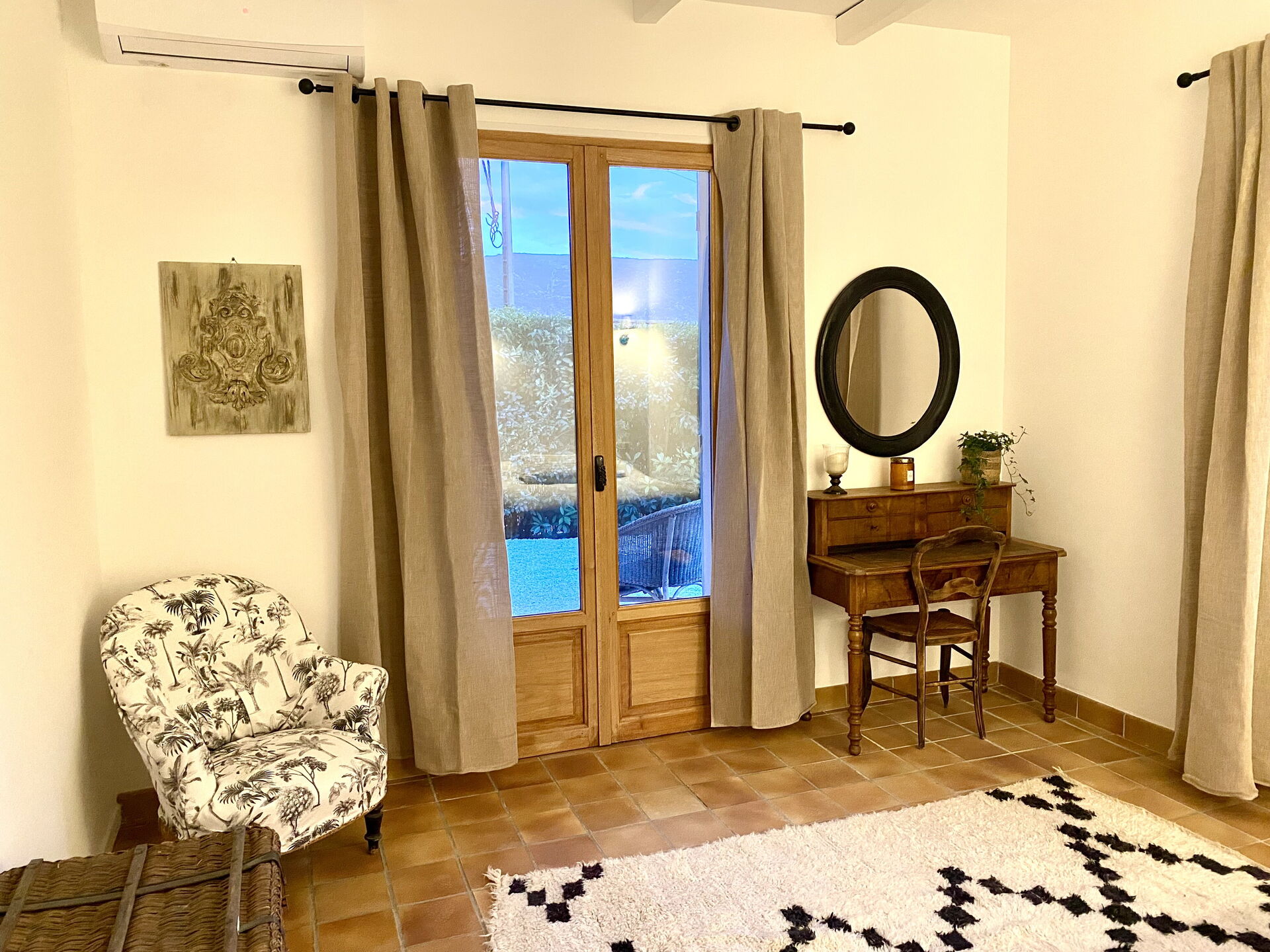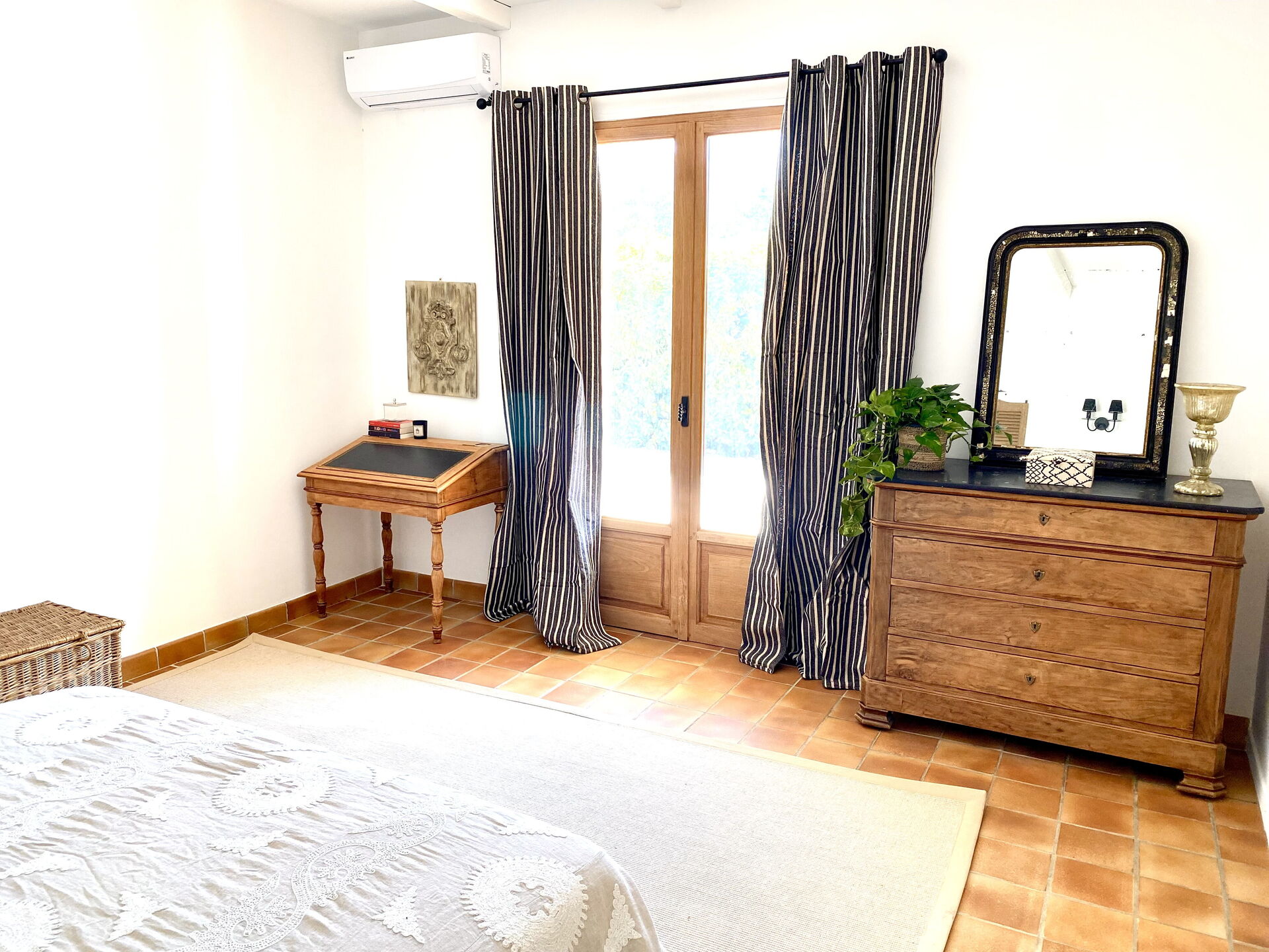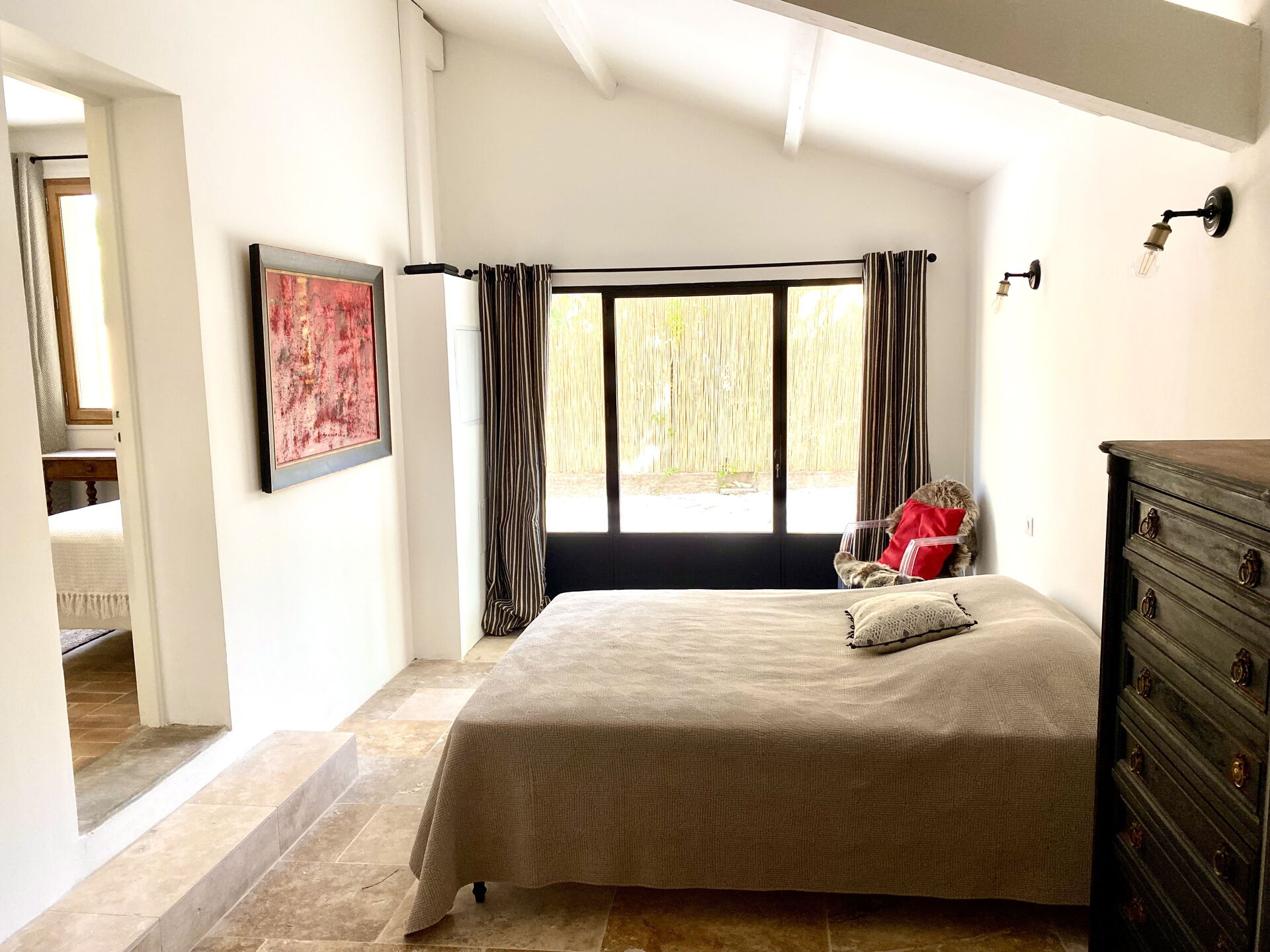 Slaapkamer 3 (25 m2): tweepersoonsbed (breedte: 1.6m, lengte: 2m), WIFI internet, airconditioning, bureau, uitgang naar het terras.