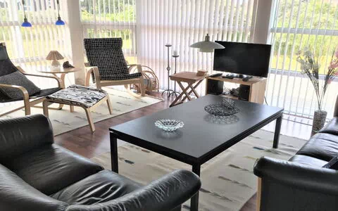 Eengezinswoning, bouwjaar 1997. 700 m van zee. Voor alleengebruik: terrein 1.300 m2. Terras (40 m2), kinderspeelplaats (schommel). In het huis: sauna, wasmachine, droger. Parkeerplaats bij het huis. Oplaadstation. Levensmiddelenwinkel 1.5 km. De eigenaar accepteert geen jeugdgroepen.