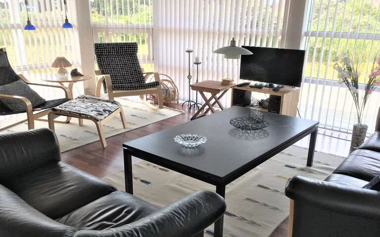 "Tjomme" - 700m from the sea", huis 4-kamers 96 m2. Het objekt is geschikt voor 8 volwassenen + 1 kinderen. Woonkamer met TV, video, radio, CD-speler, stereo-installatie en DVD. 1 kamer met 2 bedden. 1 kamer met 1 x 2 stapelbedden. 1 kamer met 1 2-pers bed. 1 kamer met 1 2-pers bed. Keuken (oven, afwasmachine, 4 keramische glas kookplaten, magnetron, diepvriezer). Douche/WC, hydro massage bad. Ter beschikking: kinderstoel, kinderbed. Internet (WiFi). Niet rokers woning. Maximaal 1 huisdier/hond toegestaan. 860-25156