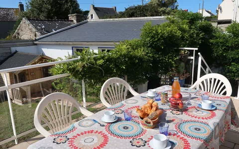 De volledig omheinde tuin van 400 m² biedt privacy en rust, met inheemse beplanting en seizoensbloemen die een rustige sfeer creëren. Het terrein beschikt over ruime buitenruimte waar gasten kunnen ontspannen en genieten van de frisse zeelucht. Een tafeltennistafel staat ter beschikking van gasten van alle leeftijden. Het zandstrand Plage de Pors Ar Marc'h ligt op slechts 400 meter van het huis.