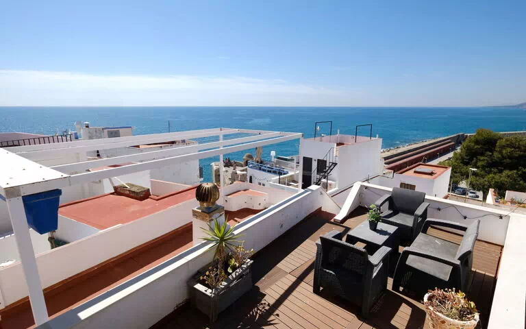 "At Rincon del Bufador", huis 4-kamers 92 m2 op 4 verdiepingen. Licht, afgeschuinde daken, gedeeltelijk gerenoveerd in 2017, doelmatig en comfortabel ingericht: souterrain: salon met eettafel, eethoek, Digitale TV, elektrische verwarming en air-conditioning. Bovenverdieping: woon-/eetkamer met eettafel, elektrische verwarming en air-conditioning. Uitgang naar het balkon. Kleine keuken (4-pits kookplaat, afwasmachine, magnetron, diepvriezer, elektrische koffiemachine, pads voor de koffiemachine (NESPRESSO)). 2e Verdieping: 1 kamer met 2 bedden (90 cm, lengte 190 cm), elektrische verwarming en air-conditioning. Uitgang naar het balkon. 3e Verdieping: 1 kamer met 1 2-pers bed (150 cm, lengte 190 cm), air-conditioning. Uitgang naar het balkon. Bad/douche. Elektrische verwarming, boiler (70 liter). Zolderverdieping: open salon met afgeschuinde daken met Digitale TV en air-conditioning. Uitgang naar het terras. 2 terrassen. Terrasmeubelen, barbecue (verrijdbaar), zitgelegenheid. Uitzicht op zee en de plaats. Ter beschikking: wasmachine, strijkijzer, haardroger. Internet (Internet (WiFi), gratis). Niet rokers woning. 1 klein huisdier/hond toegestaan. TV alleen ES. Geen lift. EGVT-412-CS