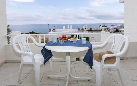 "Sunrise Lodge", appartement 2-kamers op de 1e verdieping. Eenvoudig en doelmatig ingericht: woon-/eetkamer met 1 divanbed, eettafel en Digitale TV. Uitgang naar het terras. 1 kamer met 1 bed (160 cm, lengte 200 cm). Open keuken (4-pits kookplaat, oven, broodrooster, waterkoker, elektrische koffiemachine, pads voor de koffiemachine (Nespresso) extra). Douche/bidet/WC. (100 liter). Geen verwarmingsmogelijkheid. Terrasmeubelen. Panoramazicht op zee. Ter beschikking: wasmachine, strijkijzer, haardroger. Internet (Internet (WiFi), gratis). 2 huisdieren/honden toegestaan. HUTTE-001355
