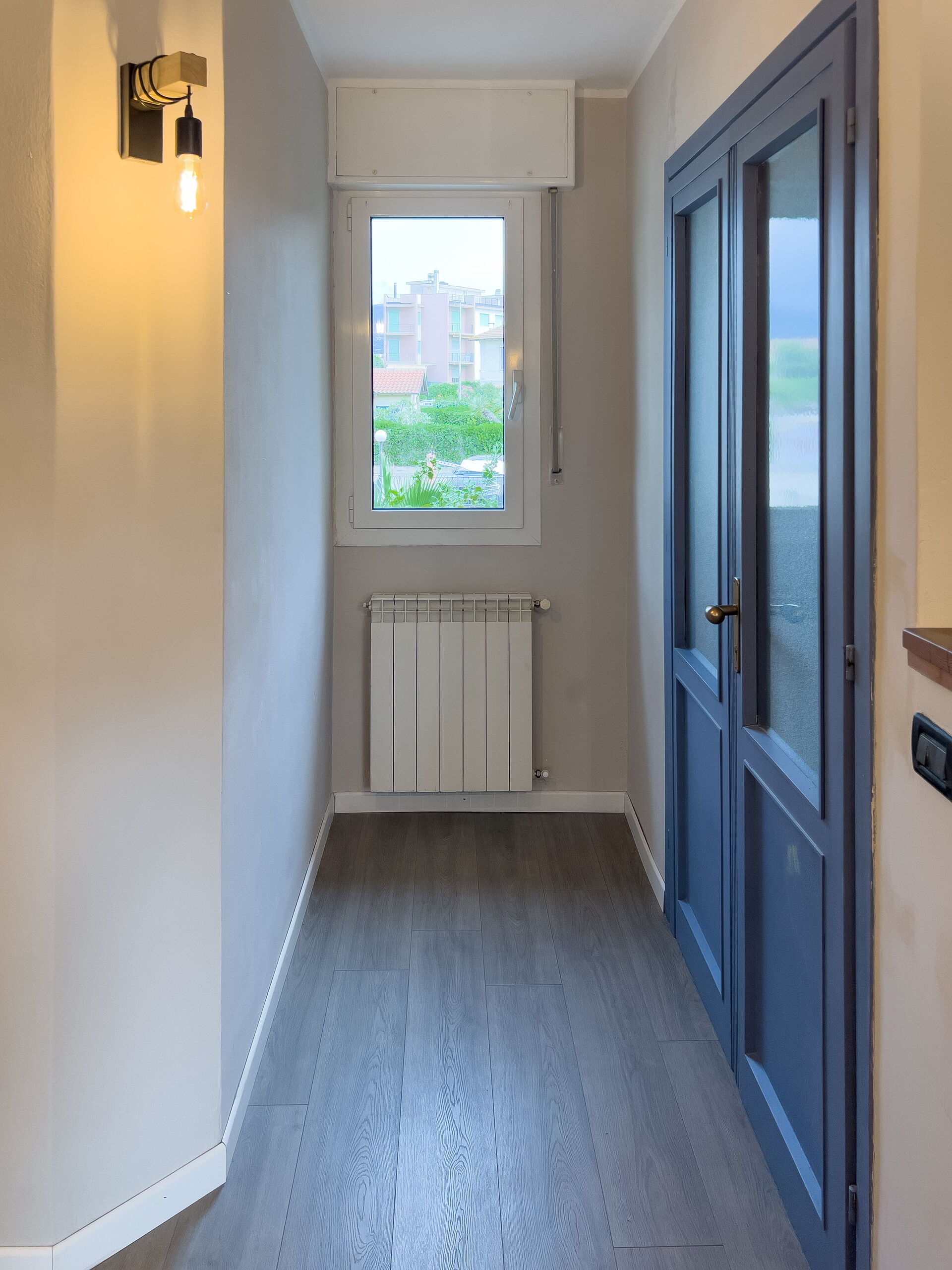 Vanuit de woonkamer komt u op een kleine veranda met wasmachine en droogrek.
