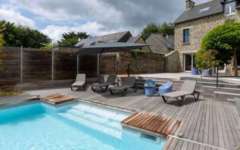 Le tronchet: Zeer mooi, comfortabel, luxueus landhuis "La Gentilhommière", van 3 verdiepingen, gerenoveerd, omgeven door bomen. Geïsoleerde, rustige, zonnige ligging, 19 km van zee. Voor alleengebruik: verzorgde tuin 800 m2 (omheind) gazon en bomen, openluchtzwembad hoekig (5 x 10 m, seizoensgebonden beschikbaarheid: 15.Mei. - 30.Sep.) met oprolbaar afdekscherm. Onderhoud zwembad door de eigenaar/tuinman. In het huis: salon met TV, Internet (WiFi), fitnessruimte, speelkamer, tafelvoetbal. Parkeerplaats (voor 4 auto's). Levensmiddelenwinkel 6 km, restaurant 1 km, bakkerij 5 km, bushalte "Tronchet centre" 260 m, treinstation "Plerguer" 6 km, veerboot "Gare maritime du Naye" 26 km, zandstrand "Saint Suliac" 19 km, thermaalbad "Therme marin de Saint Malo" 27 km, meer de Mirloup 1 km. Golfterrein (18 holes) 2 km, manege 5 km. Attracties in de buurt: Saint Malo intra muros 27 km, Cobac park 9 km, Cancale 26 km, Grand aquarium de Saint Malo 23 km, Golf du Tronchet 2 km, Mont Saint Michel 40 km. Auto noodzakelijk.