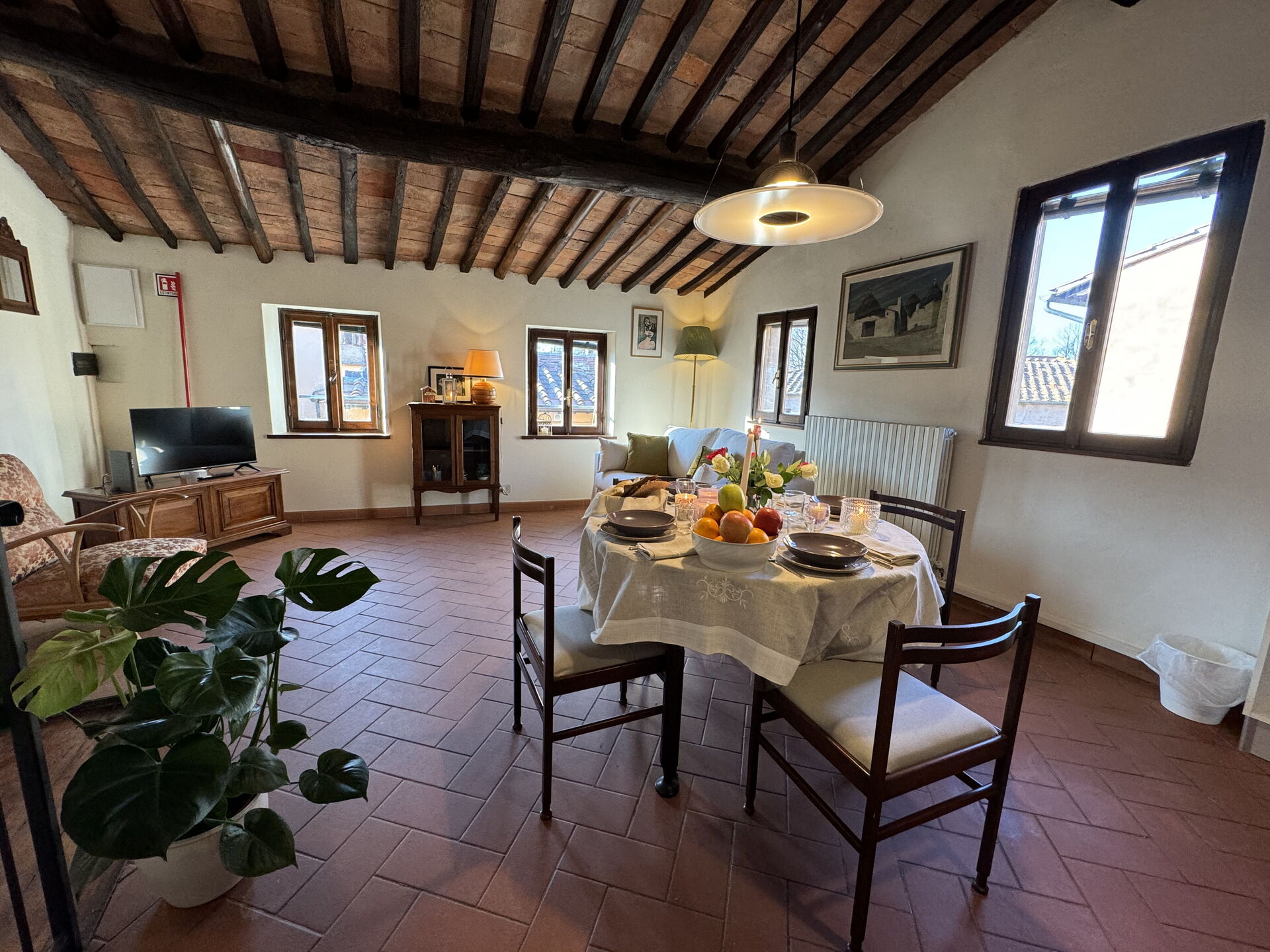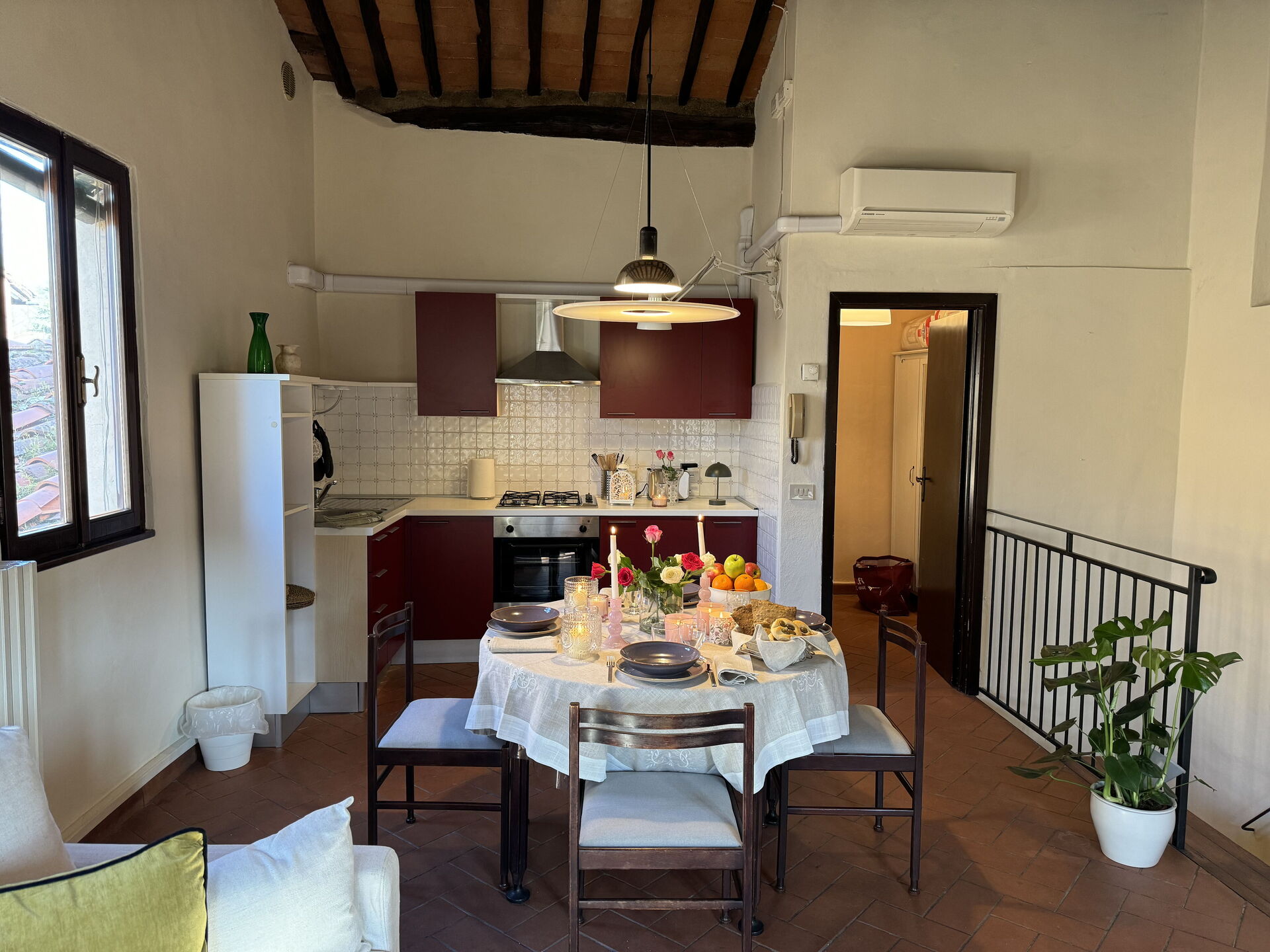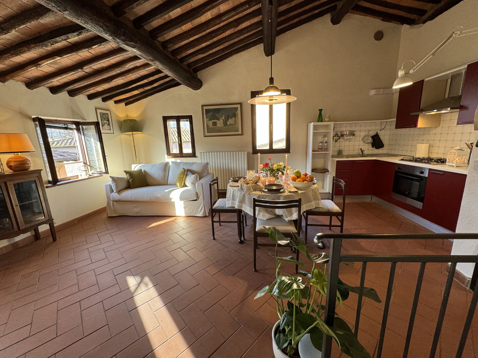 Bij aankomst vindt u een fijne, schone en goed onderhouden woning perfect voor een rustige vakantie in Toscane. Na een hectische dag musea bezoeken kunt u de tijd doorbrengen met vrienden en familie en genieten van een glaasje wijn - een perfecte manier om te uitrusten aan het einde van de dag. Eten met vrienden en familie is een grote onderdeel van de Toscaanse cultuur. Maak gebruik van de keuken om maaltijden te bereiden met lokale producten terwijl u op vakantie bent. De keuken biedt o.a. een broodrooster, fornuis en ijskast, en natuurlijk ook voldoende servies en bestek voor minstens vier personen. Eet buiten net zoals een echte Toskaan, een balkon met tuinmeubilair is perfect om te genieten van het heerlijke eten, de familie en het fijne Toscaanse klimaat.