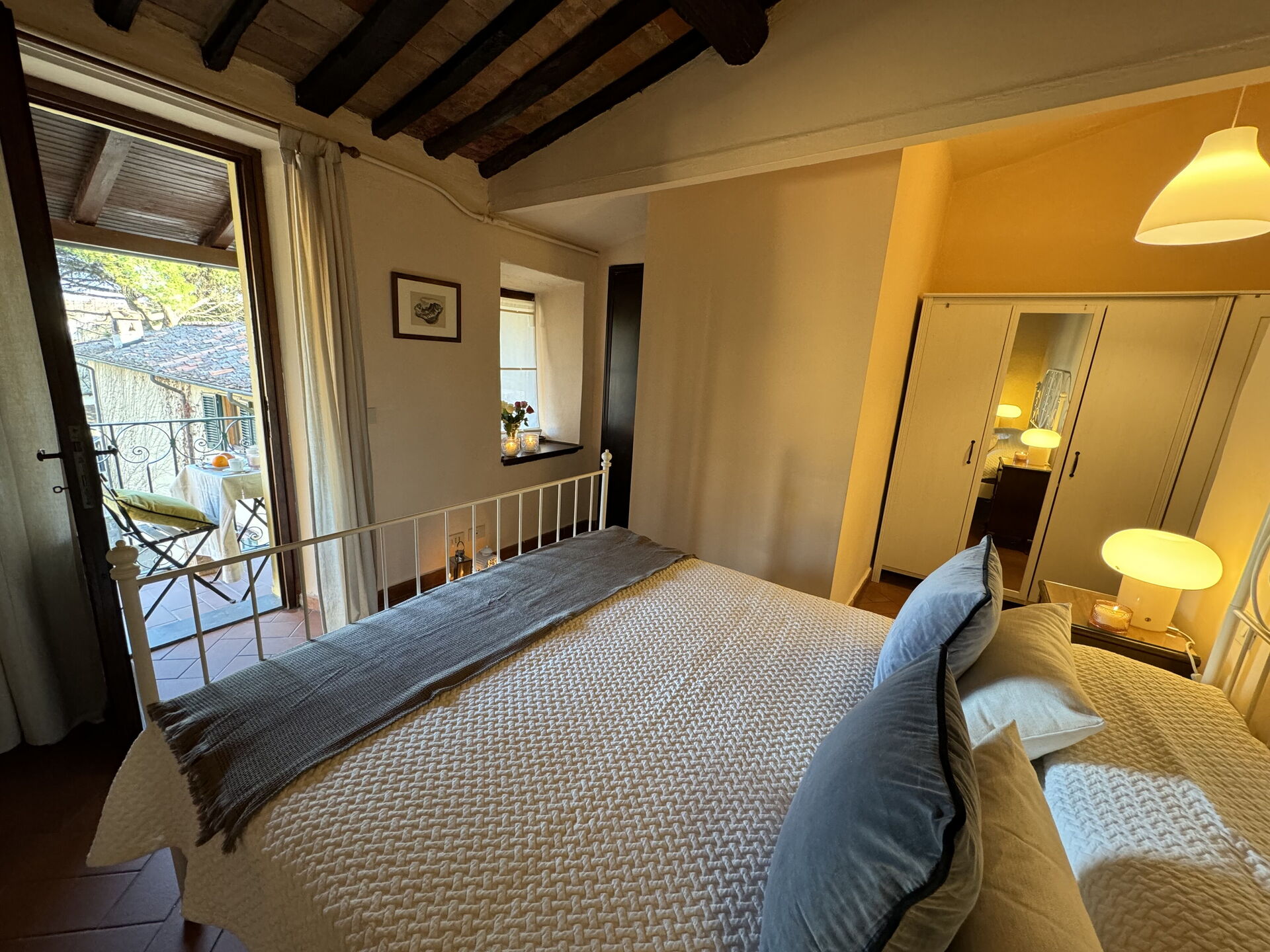 Slaapkamer: tweepersoonsbed, uitgang naar het balkon.