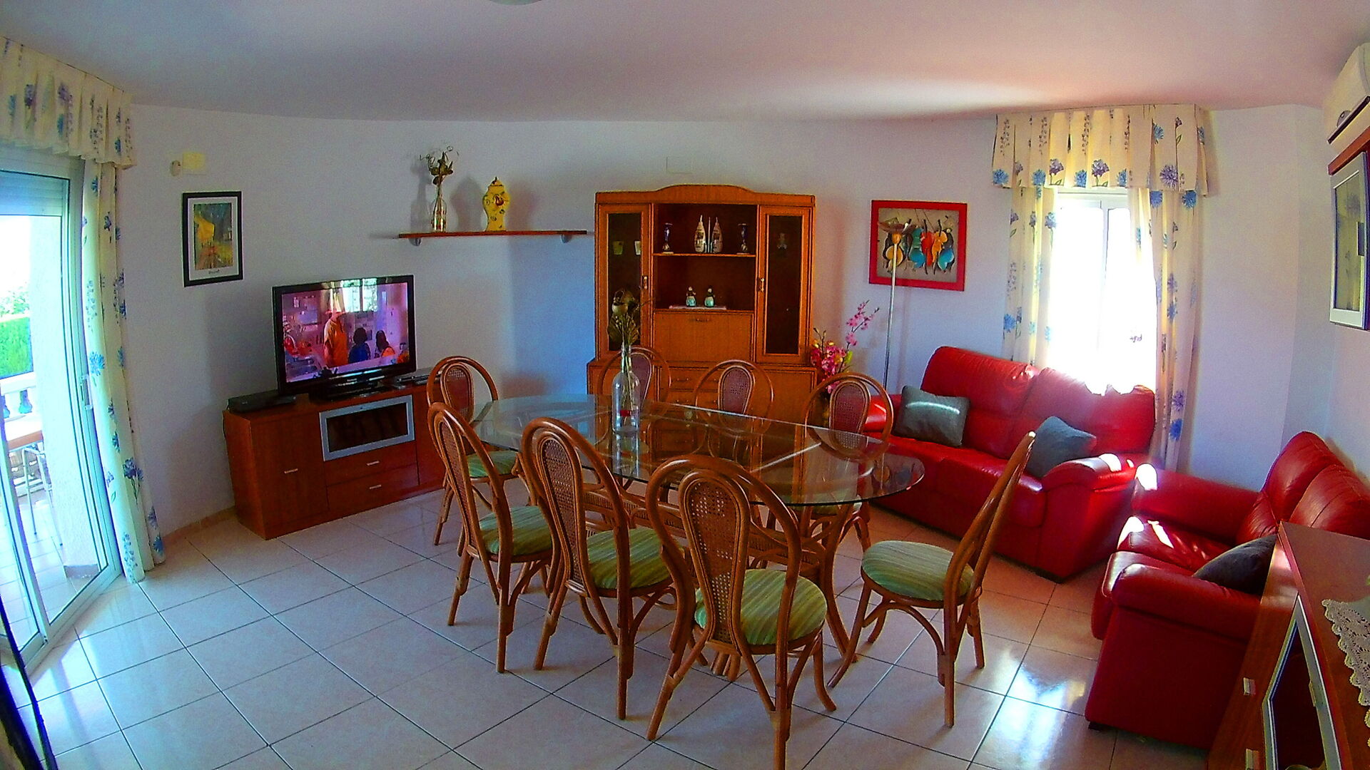 Eetkamer: eettafel (personen: 10), airconditioning, WIFI internet, satelliet tv, uitgang naar het terras.