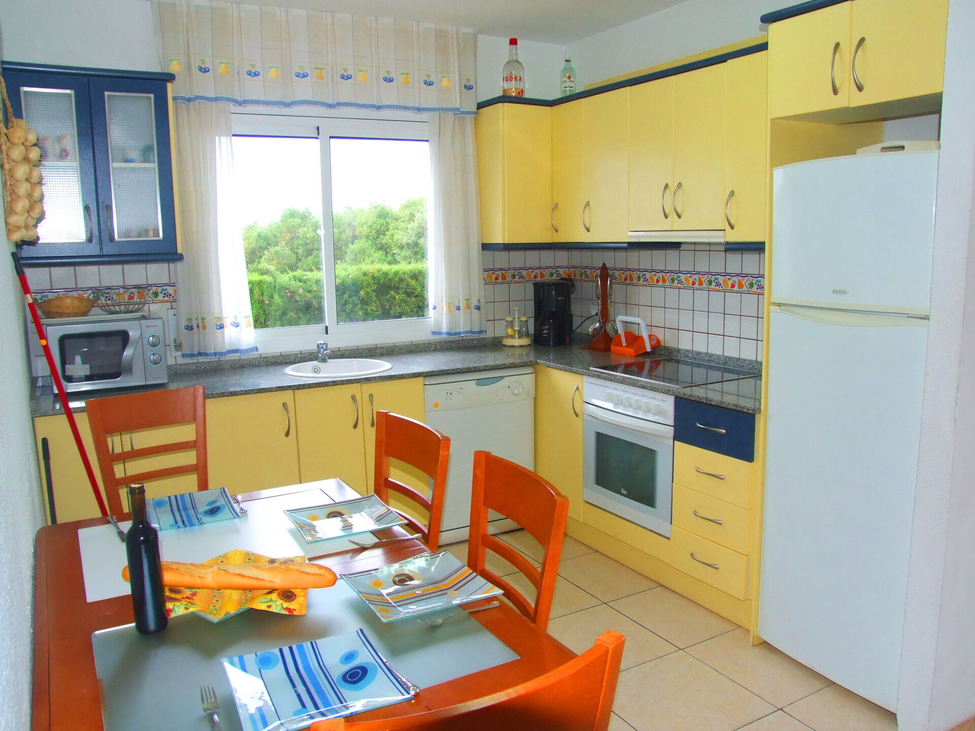 Keuken (15 m2): goed uitgeruste keuken, vaatwasser, diepvriezer, magnetron, oven, broodrooster, wasmachine, tv, uitgang naar de tuin, uitgang naar het terras.