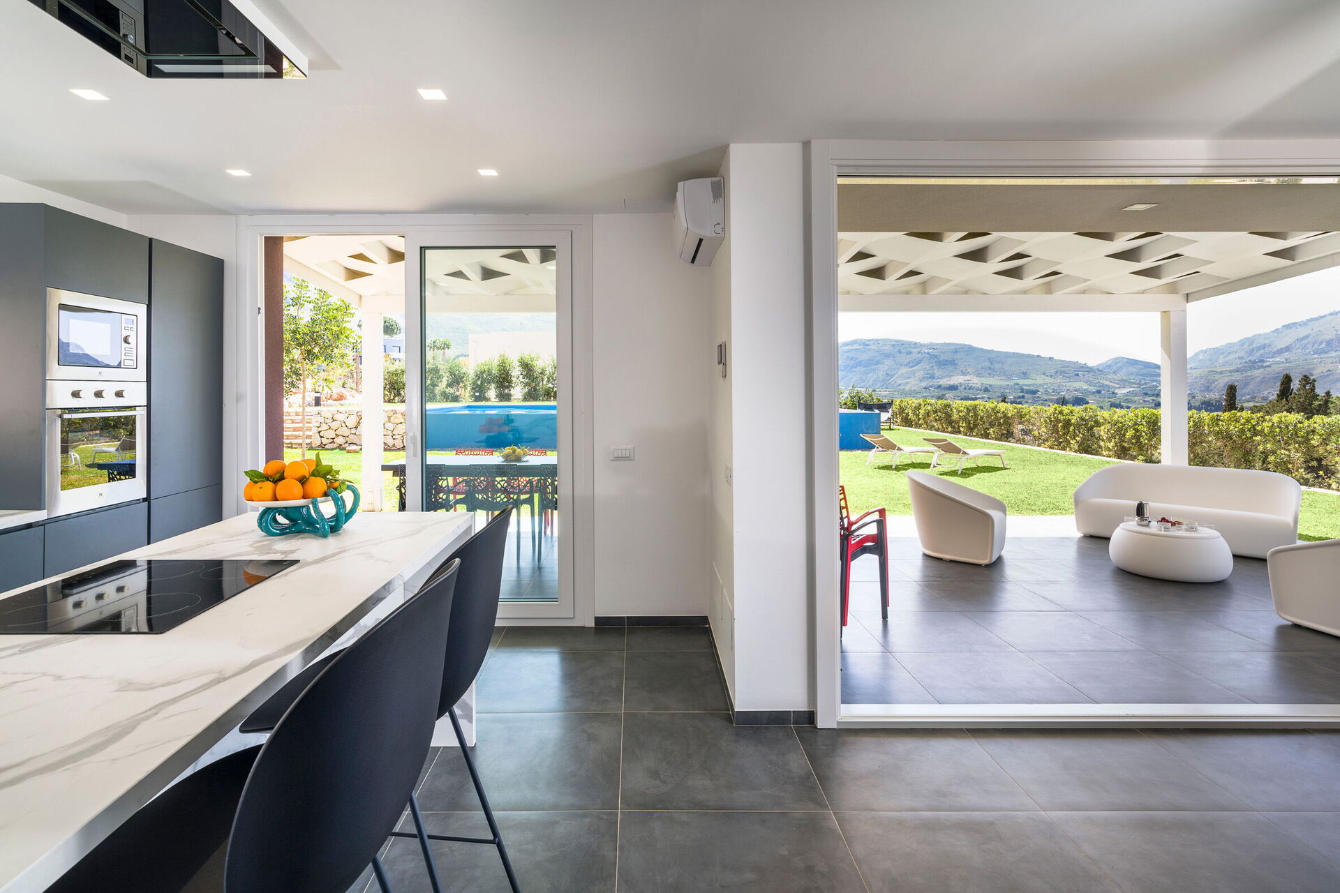 Wanneer u aankomt vindt u een prachtige, schone en goed onderhouden woning met uitzicht over de heuvels en de zee ideaal voor een rustige vakantie in Sicilië. Na een drukke dag musea bezoeken kunt u de tijd doorbrengen met vrienden en familie bij het zwembad, en genieten van een glaasje wijn - een perfecte manier om te ontspannen aan het einde van de dag. Eten met vrienden en familie is een grote onderdeel van de Italiaanse cultuur. Maak gebruik van de goed uitgeruste keuken om maaltijden te bereiden met lokale producten terwijl u op vakantie bent. De keuken biedt o.a. een koffiezetapparaat, magnetron oven, broodrooster, fornuis en ijskast, en natuurlijk ook voldoende servies en bestek voor minstens acht personen.